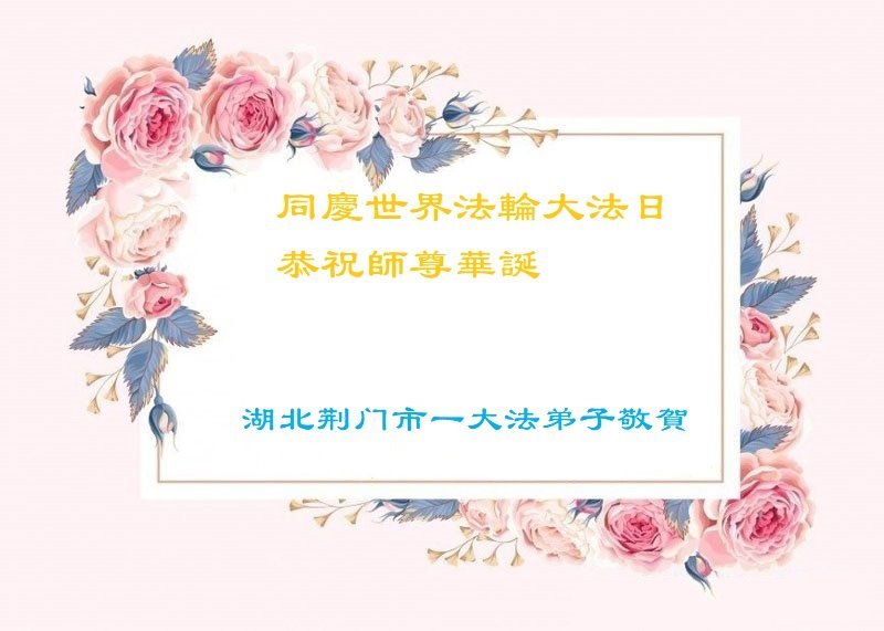 恭祝慈悲伟大的师父生日快乐!恭贺世界法轮大法日!叩谢师恩! 湖北省荆州市松滋市一大法弟子及其家人敬上 湖北省黄冈市黄梅县大法弟子恭贺世界法轮大法日!恭祝师尊生日快乐!