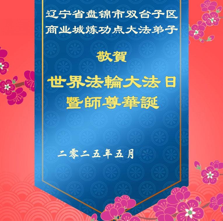 恭贺世界法轮大法日!恭祝伟大的师尊生日快乐! 师父您辛苦了! 辽宁省盘锦大法弟子敬上 二零二五年五月四日 辽宁省盘锦市双台子区商业城大法弟子恭贺世界法轮大法日暨师尊生日快乐!