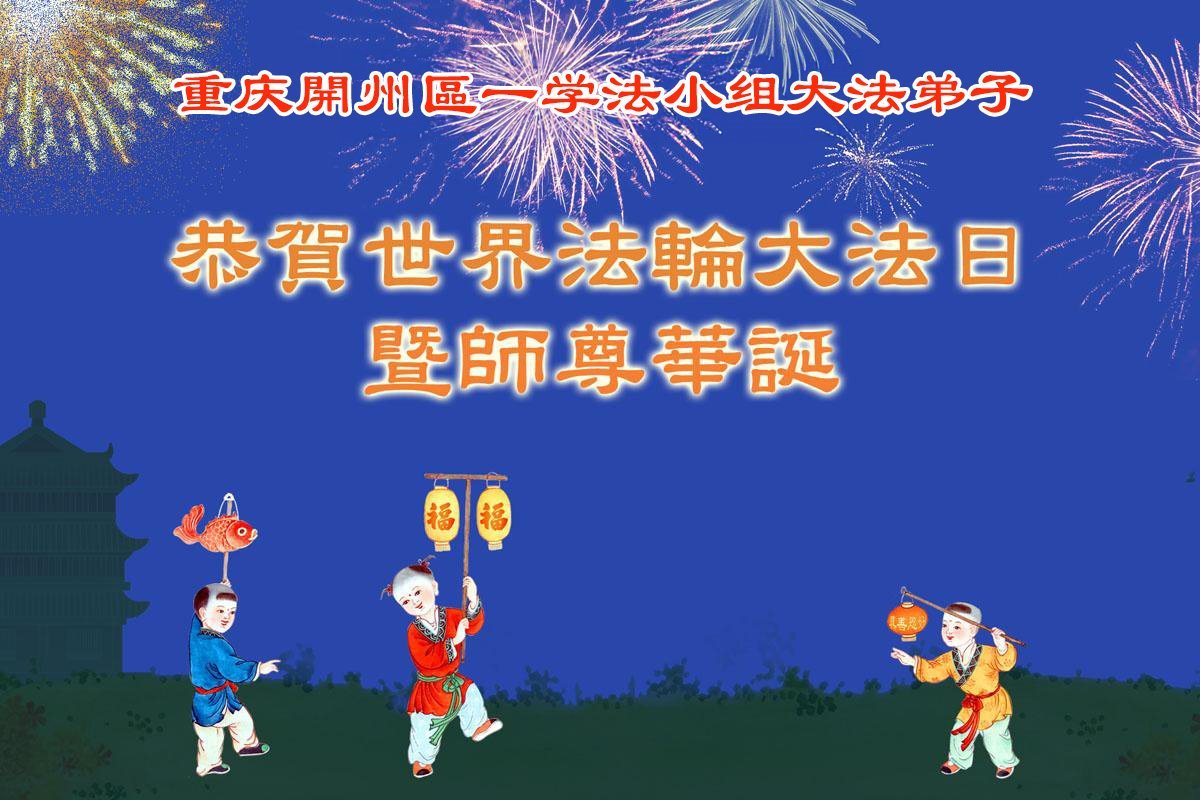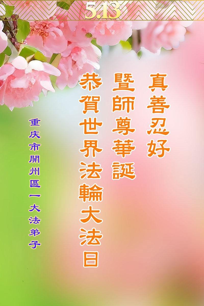 恭贺世界法轮大法日!恭祝师尊生日快乐!师尊辛苦了! 重庆市开州区一大法弟子敬上 重庆垫江县大法弟子敬贺世界法轮大法日!