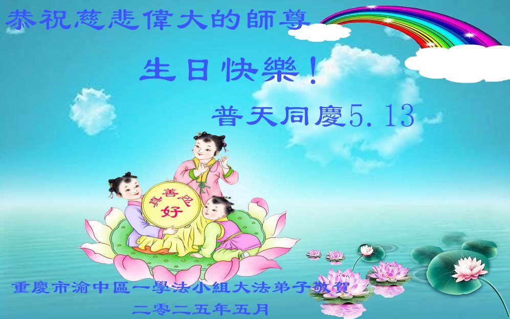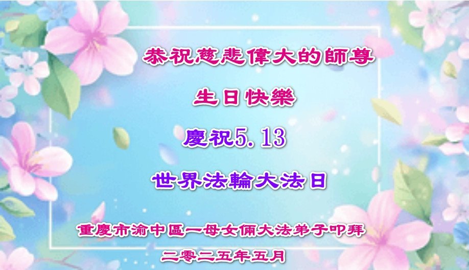 恭祝师父生日快乐!庆祝世界法轮大法日! 重庆市渝中区一学法小组母女俩大法弟子敬上 重庆市沙坪坝区一大法弟子恭贺世界法轮大法日!