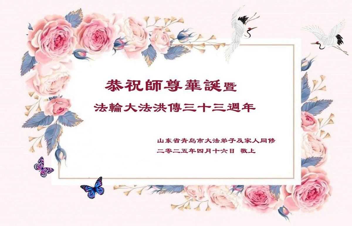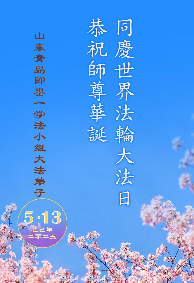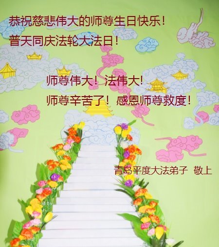 山东省青岛大法弟子恭贺世界法轮大法日暨敬祝师父生日快乐!