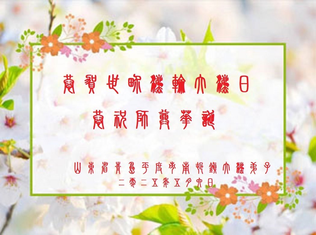 恭祝慈悲伟大的师尊生日快乐!普天同庆世界法轮大法日!感恩师尊救度之恩!师尊您辛苦了! 青岛平度大法弟子敬上 山东省青岛一大法弟子全家恭贺世界法轮大法日!