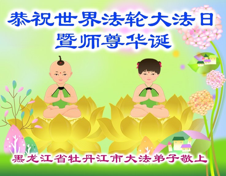 黑龙江省牡丹江市大法弟子恭贺世界法轮大法日暨敬祝师父生日快乐!