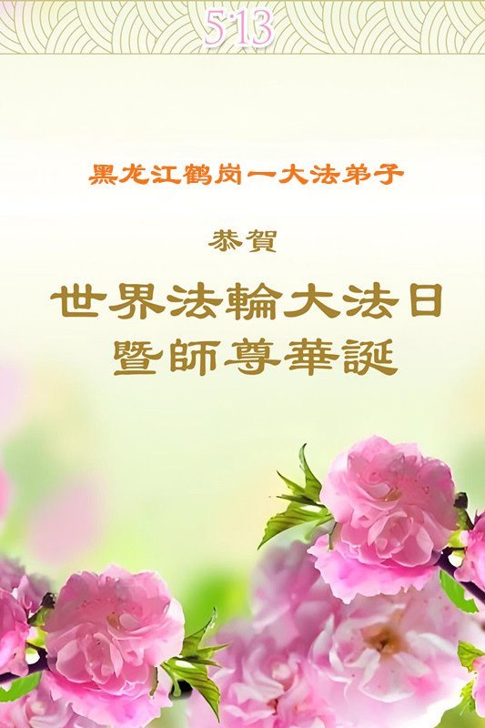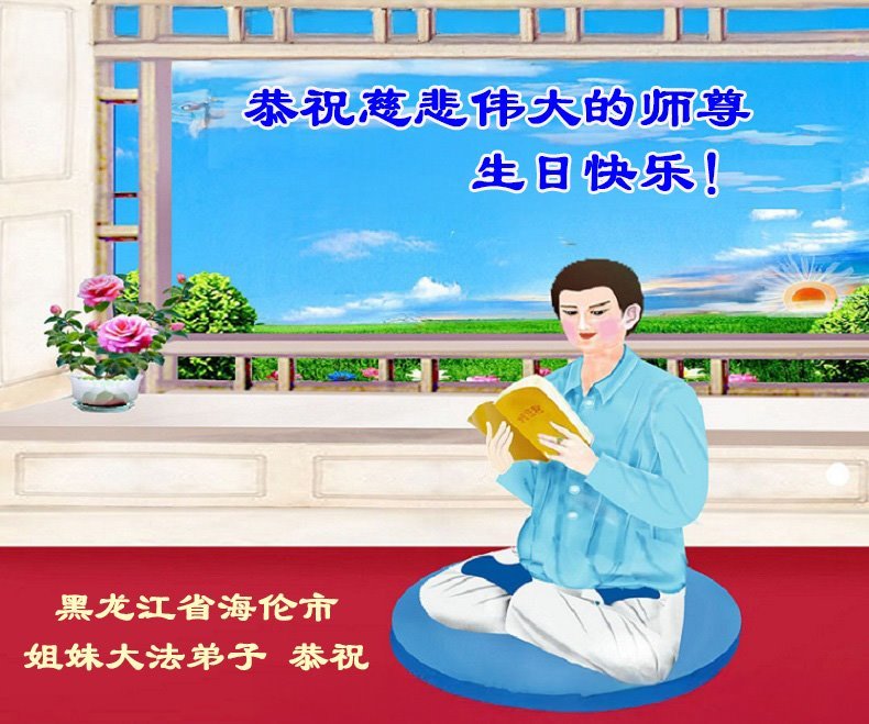 在世界法轮大法日到来之际暨师尊七十四华诞之日,弟子向慈悲伟大的师尊问好,师尊生日快乐!法轮大法好!真善忍好! 弟子感恩师尊慈悲救度,在师尊用巨大承受延续来的正法时间里,弟子一定要努力做好三件事,修好自己,多救人,紧跟师尊正法進程,圆满随师还。 黑龙江省勃利县大法弟子敬上 黑龙江省一大法弟子恭祝伟大的师尊生日快乐!恭贺世界法轮大法日!