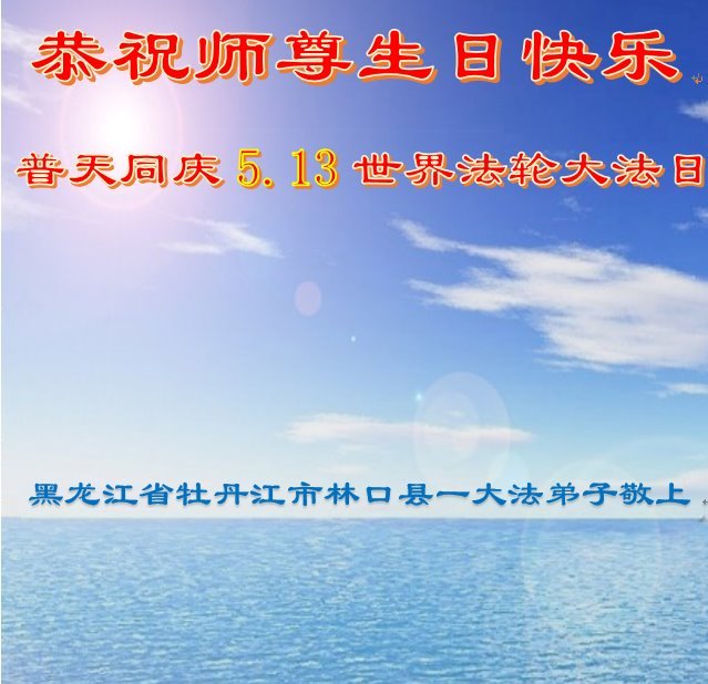 在世界法轮大法日即将来临之际,千言万语难以表达我们对师尊的敬意,我们有幸得到师尊的慈悲苦度,我们将继续与全体大法弟子一起做好三件事。 黑龙江省牡丹江市林口县一大法弟子恭贺世界法轮大法日暨敬祝慈悲伟大的师尊生日快乐!