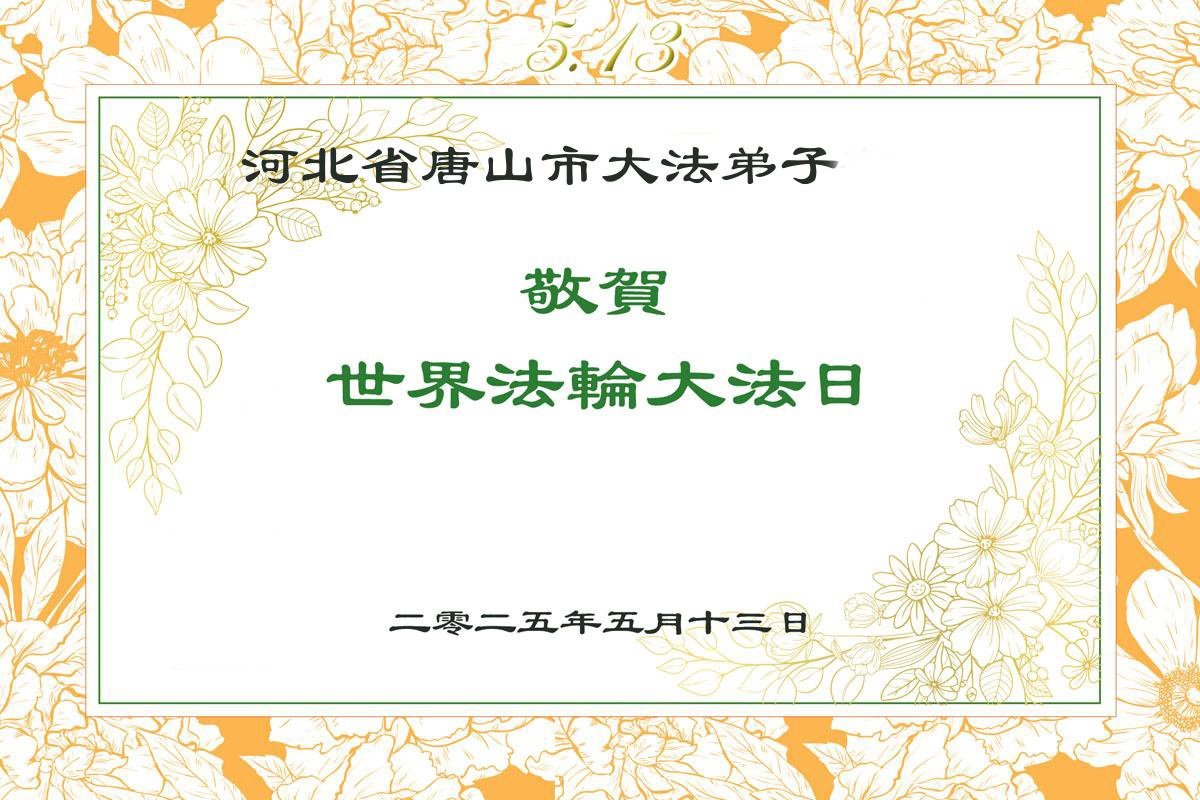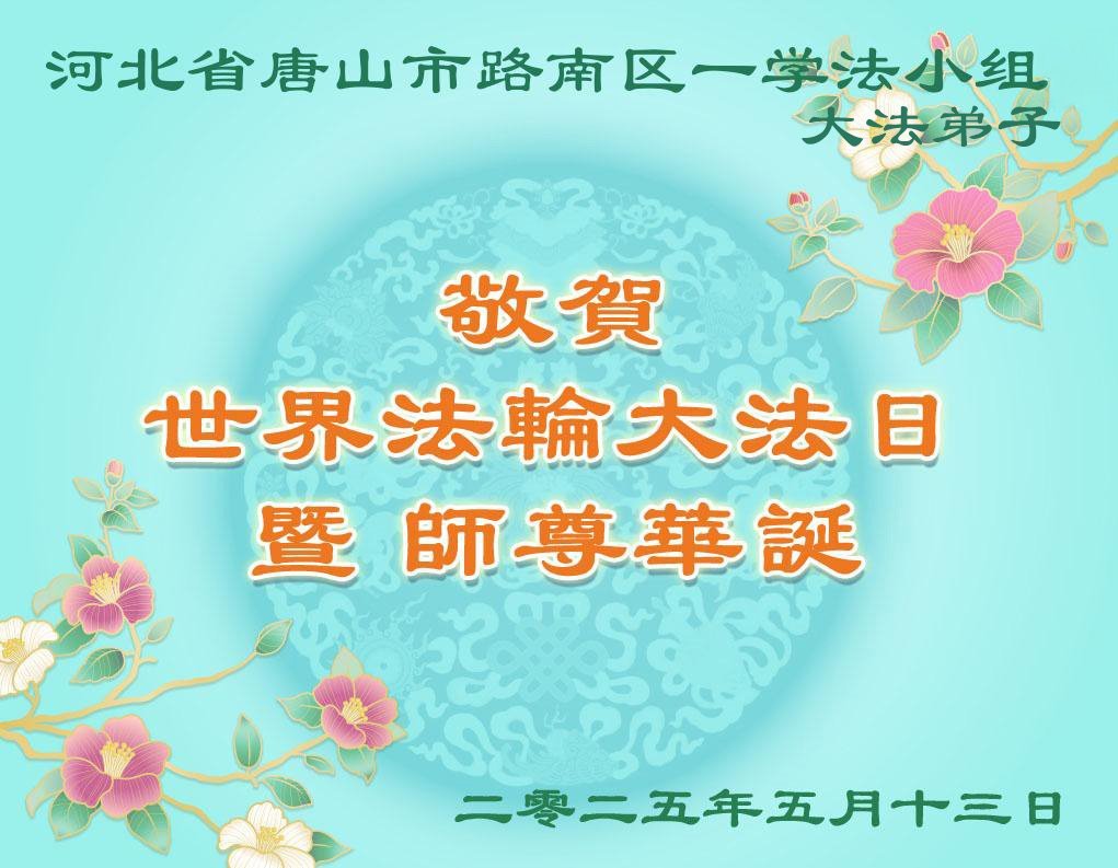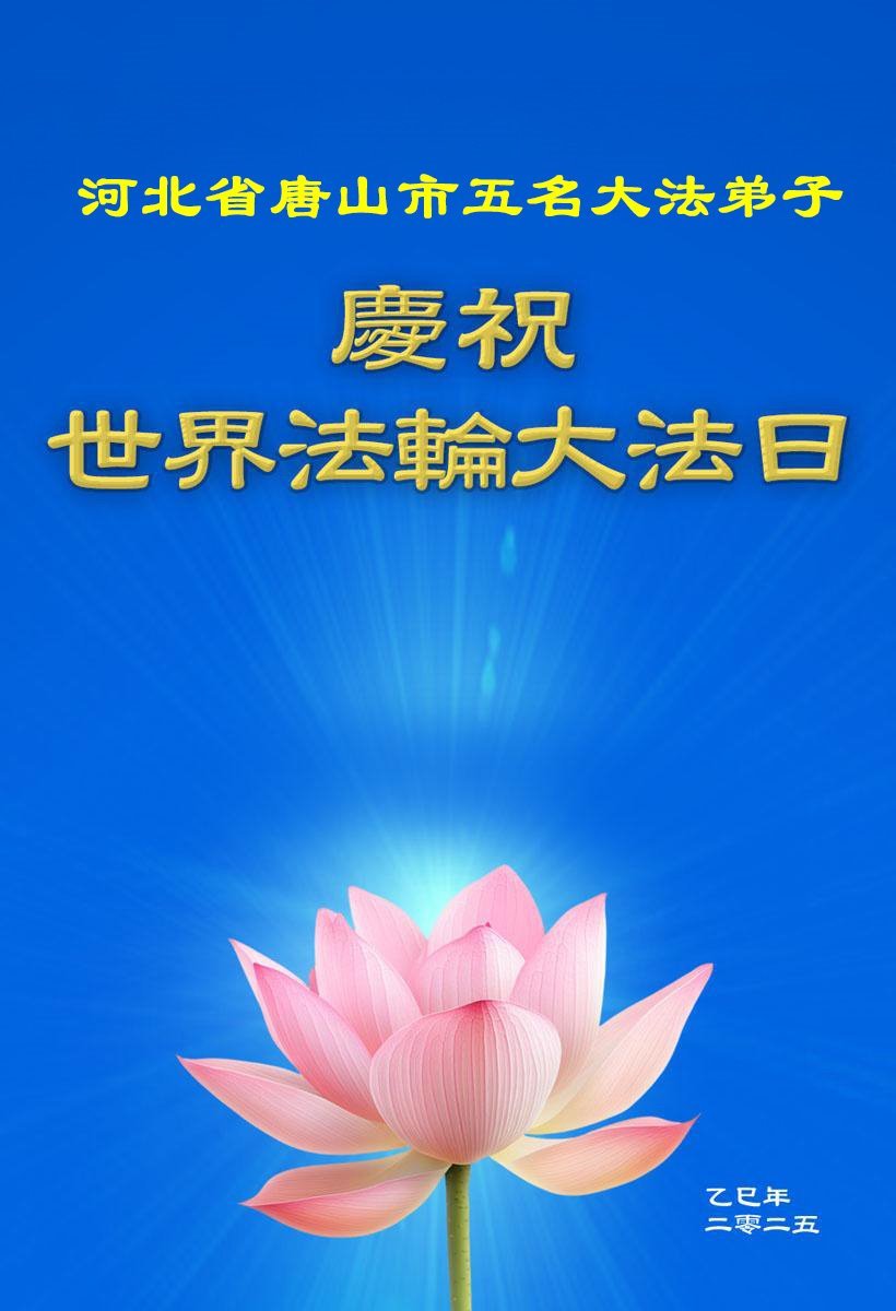 河北省唐山市5名大法弟子恭贺世界法轮大法日暨敬祝慈悲伟大的师尊生日快乐!