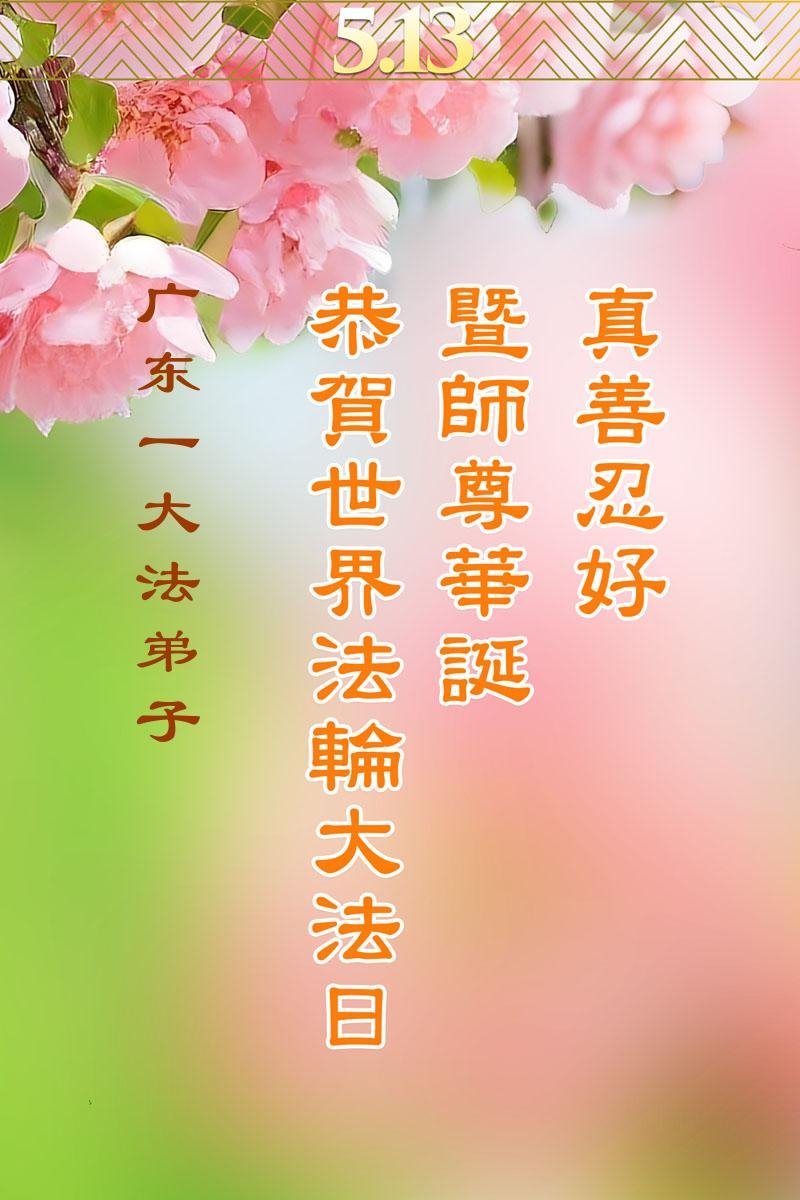 普天同庆、同贺5.13世界法轮大法日! 恭祝慈悲伟大的师尊生日快乐! 感恩师父慈悲救度!我们一定走师父安排的路,跟师父回家。 广东深圳大法弟子全家敬上 广东东莞大法弟子一家恭贺世界法轮大法日!恭祝师尊生日快乐!