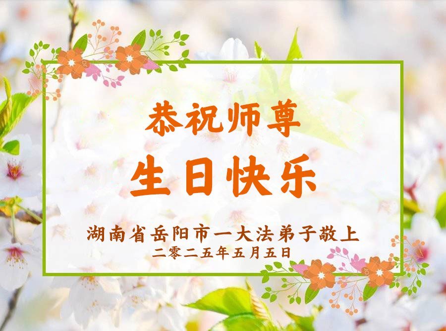 【明慧网二零二五年五月十一日】 湖南省岳阳市岳阳县全体大法弟子恭祝师尊生日快乐!