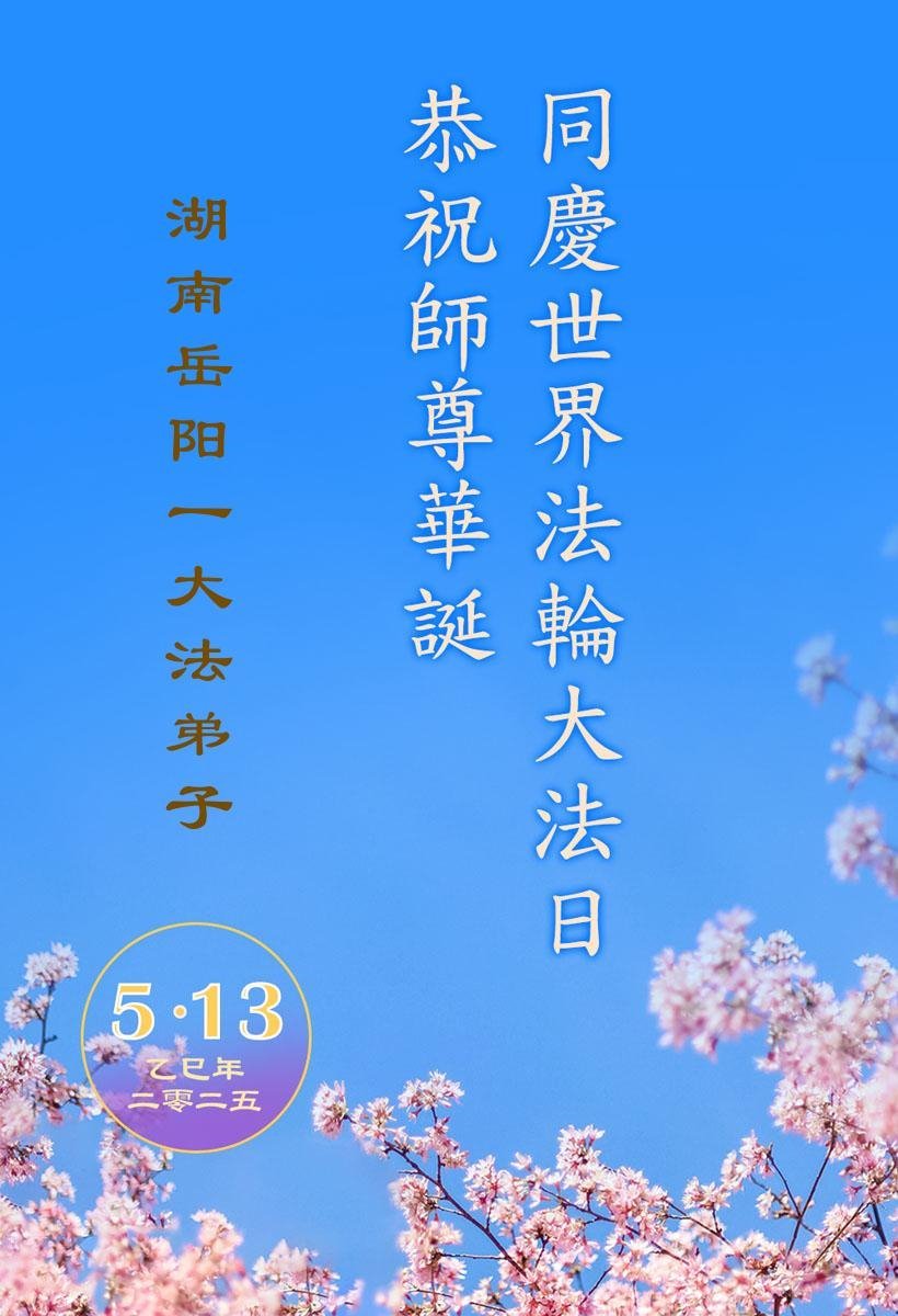 湖南岳阳一大法弟子恭祝师父生日快乐!恭贺世界法轮大法日!