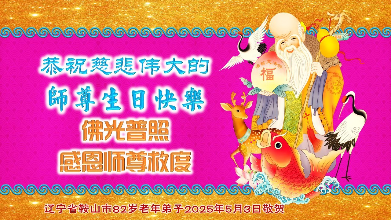 恭祝师尊生日快乐! 我感谢师父的慈悲救度。 辽宁省丹东市凤城市一老年大法弟子敬上 二零二五年五月六日 辽宁省辽阳市大法弟子庆贺世界法轮大法日!恭祝慈悲伟大的师父生日快乐!