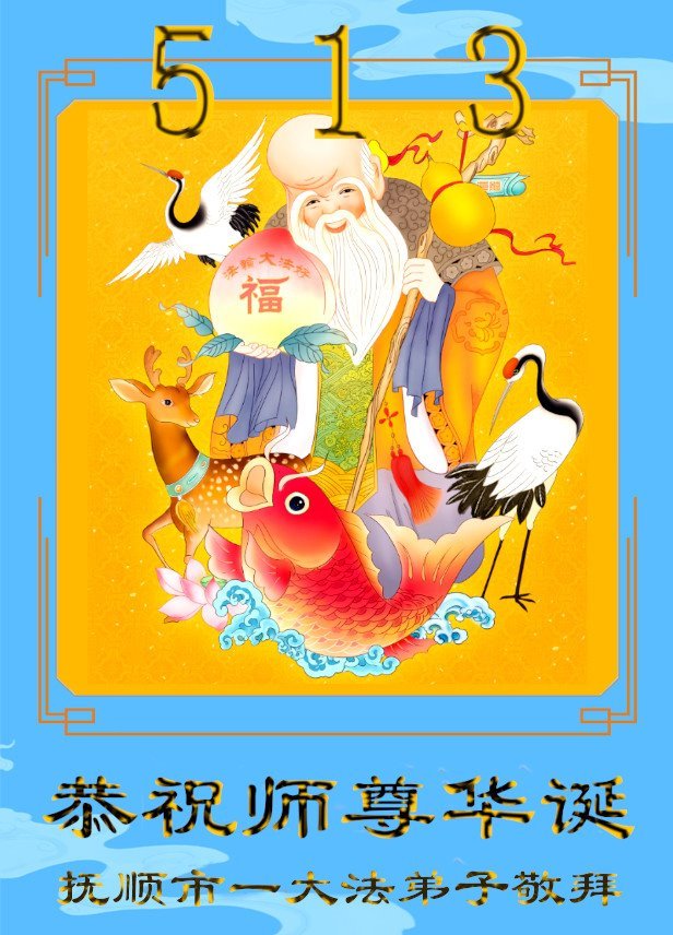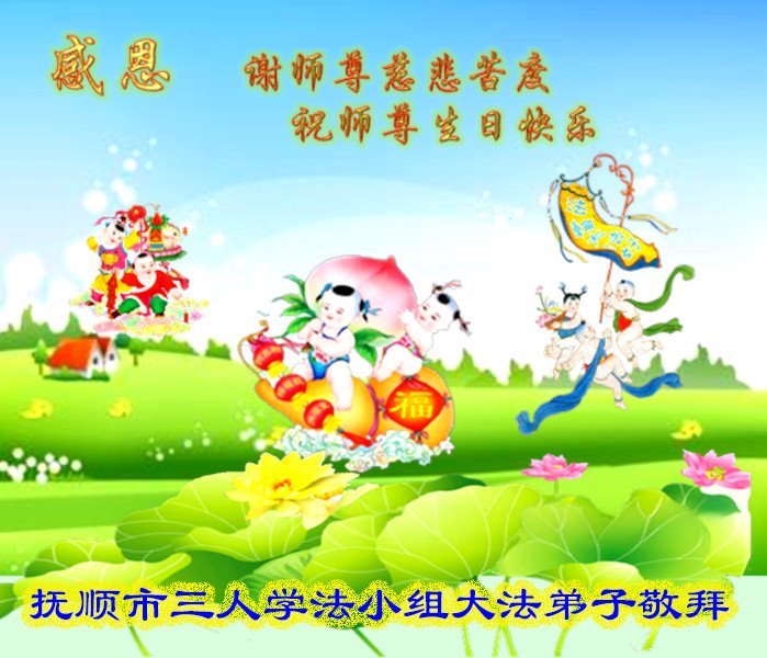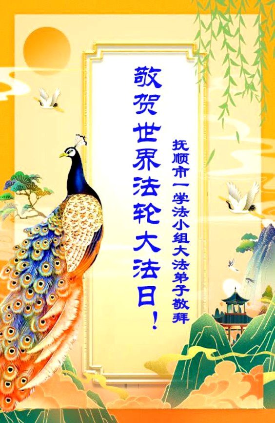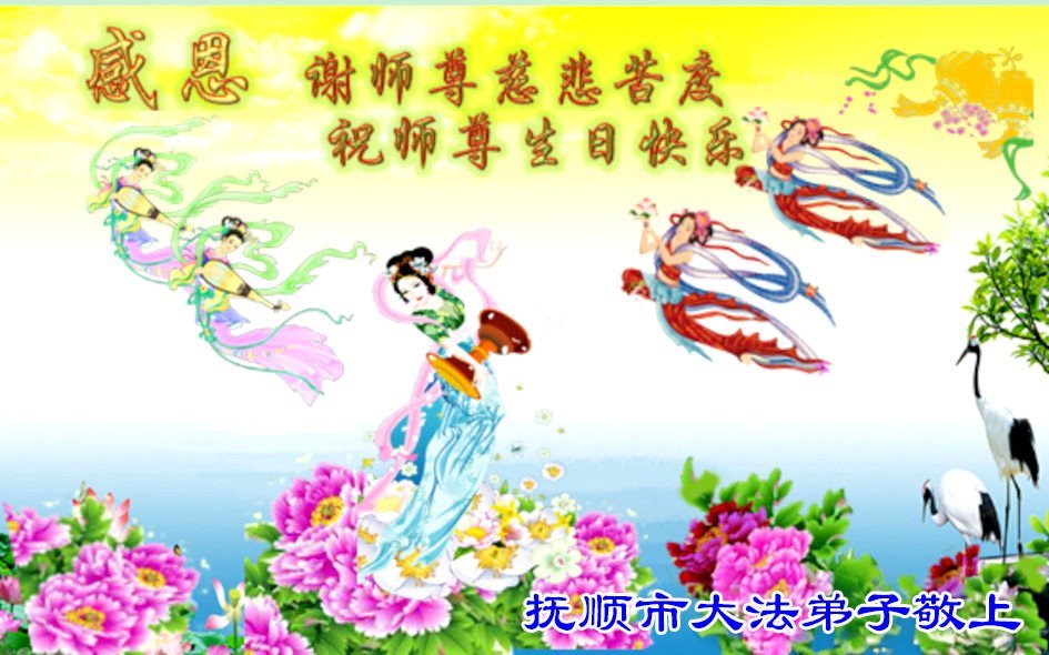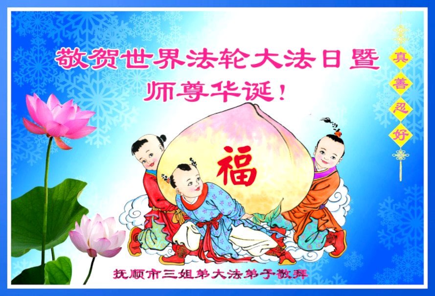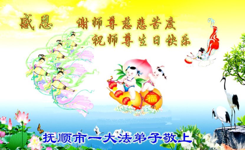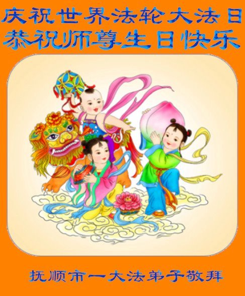 辽宁省抚顺市一大法弟子恭贺世界法轮大法日暨敬祝慈悲伟大的师尊生日快乐!