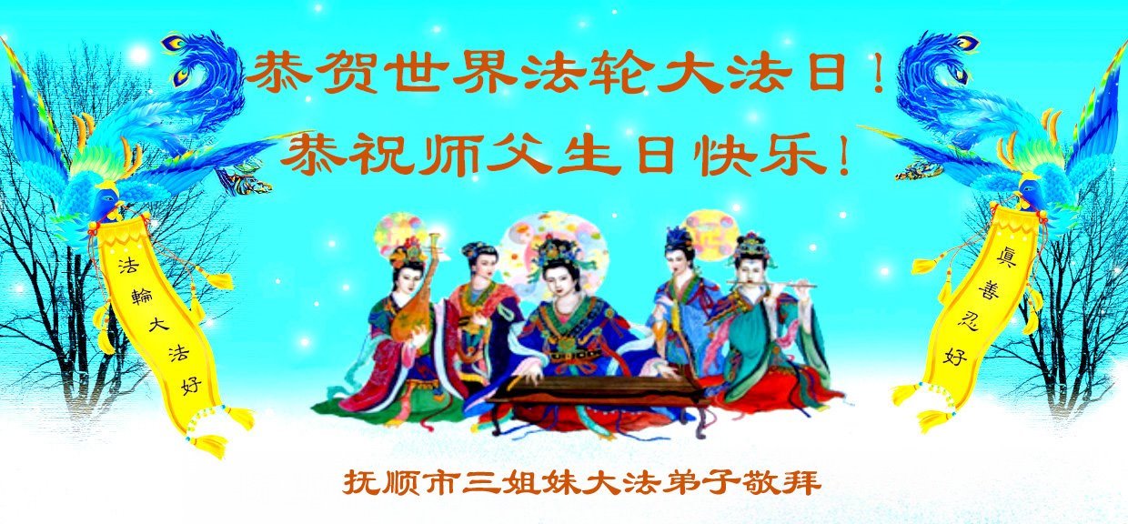 辽宁省抚顺市三姐妹大法弟子恭贺世界法轮大法日暨敬祝慈悲伟大的师尊生日快乐!