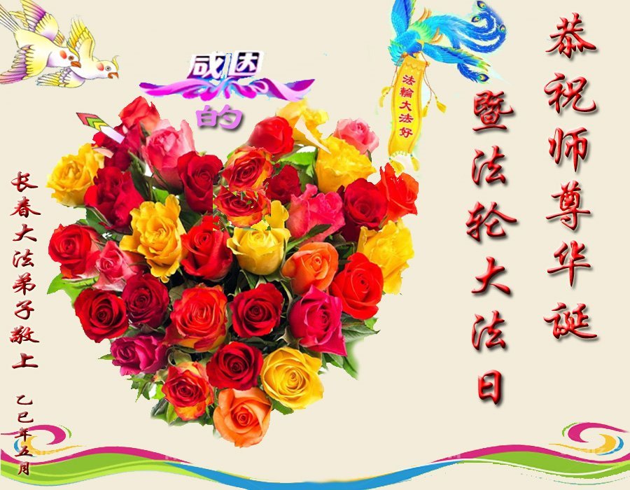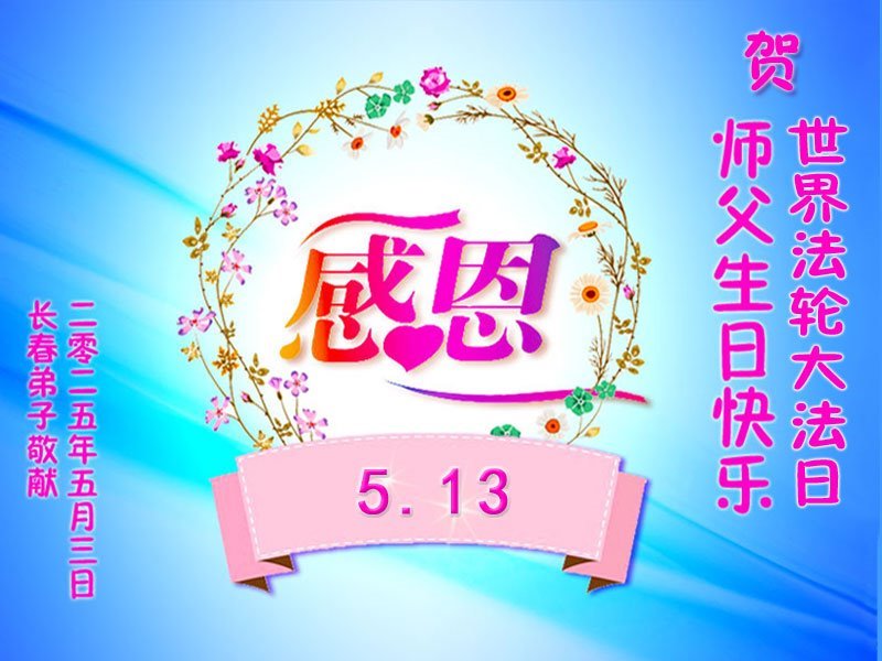 普天同庆5.13世界法轮大法日! 恭祝师尊生日快乐! 吉林省长春市大法弟子敬上 吉林省长春市俩姐妹大法弟子恭贺世界法轮大法日暨师尊华诞!
