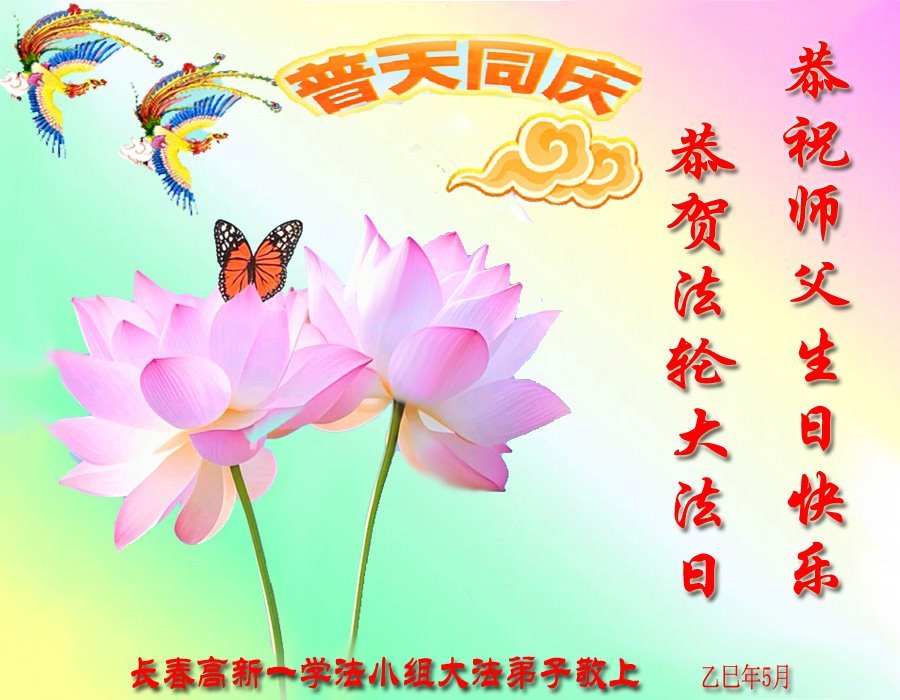 吉林省长春市高新一学法小组大法弟子恭贺世界法轮大法日!恭祝师父生日快乐!