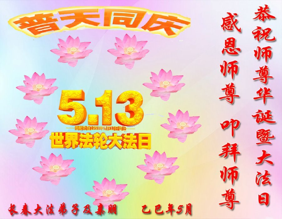 吉林省长春市大法弟子庆贺5.13世界法轮大法日!恭祝师尊生日快乐!