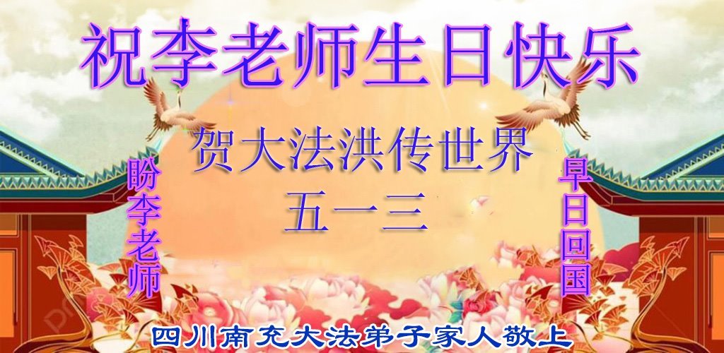 恭贺世界法轮大法日!恭祝李大师华诞!尊敬的李大师您好:我是大法弟子的家属,相信法轮大法好,支持家人修炼。期盼着您早日回归大陆。同时感恩您的慈悲护佑与救度! 辽宁省沈阳市沈北新区一大法弟子家属敬上 二零二五年四月二十八日 四川省南充大法弟子家人恭祝李老师生日快乐!恭贺世界法轮大法日!