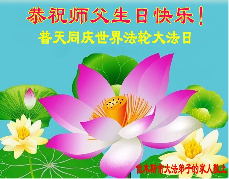 恭贺李大师生日快乐!同庆同贺世界法轮大法日! 感恩李大师教出来好徒弟,她们是一群高尚的人,做事处处为他人着想。我们能和法轮功弟子做邻居是我们福份。感谢李大师洪传法轮大法! 吉林省长春大法弟子的邻居敬上 山东省威海荣成市一大法弟子家人恭祝李大师生日快乐!恭贺世界法轮大法日!