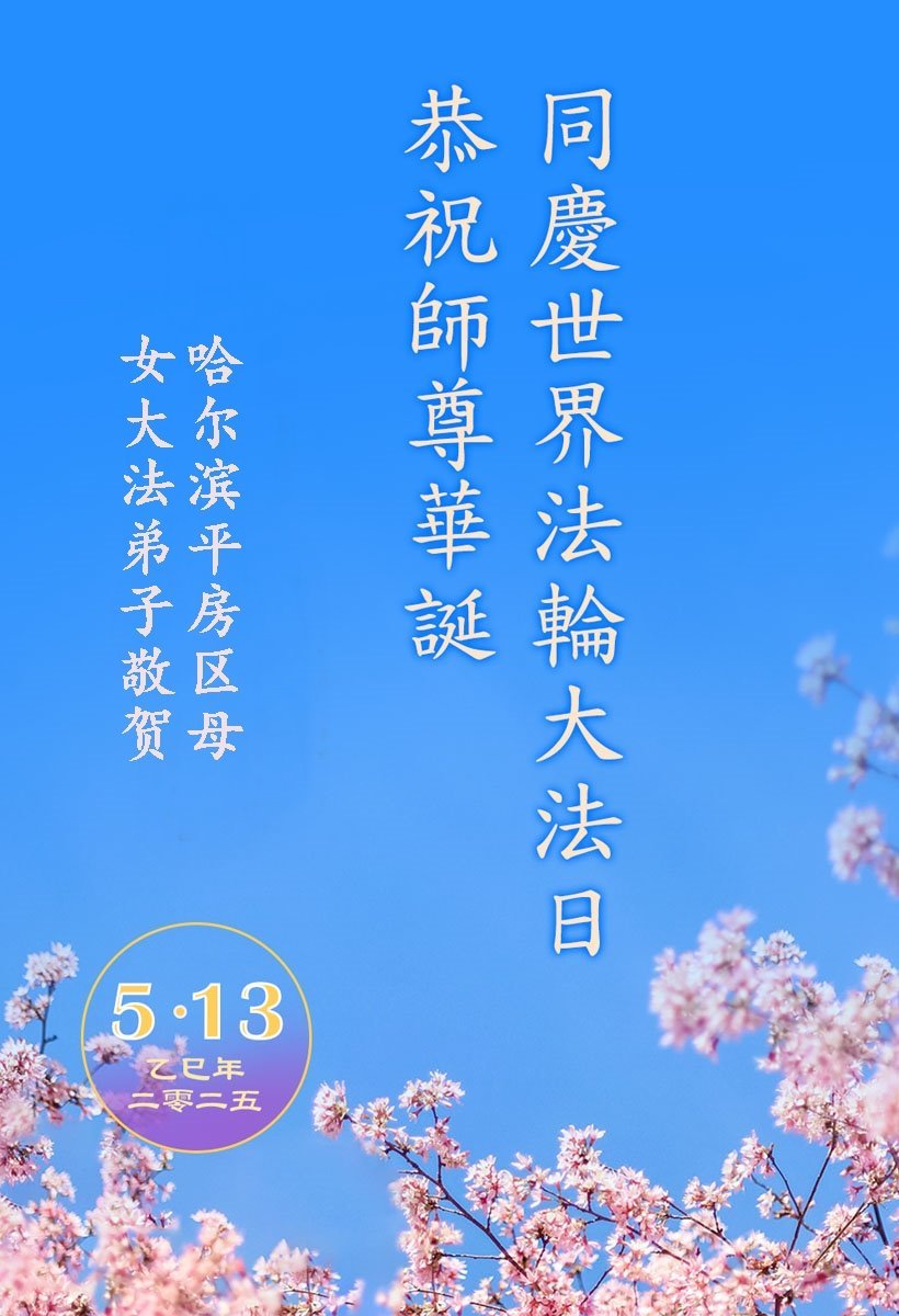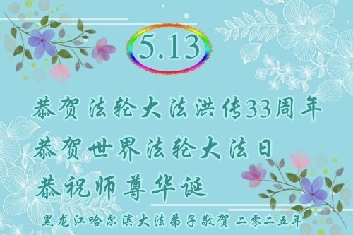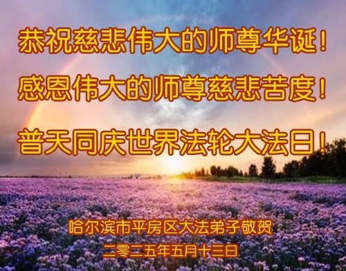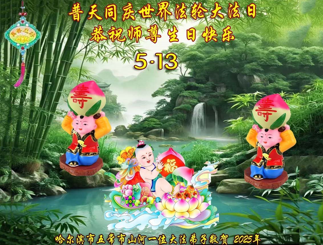 【明慧网二零二五年五月十二日】 黑龙江省哈尔滨市五常市山河一大法弟子恭祝师尊生日快乐!感恩师尊慈悲救度!