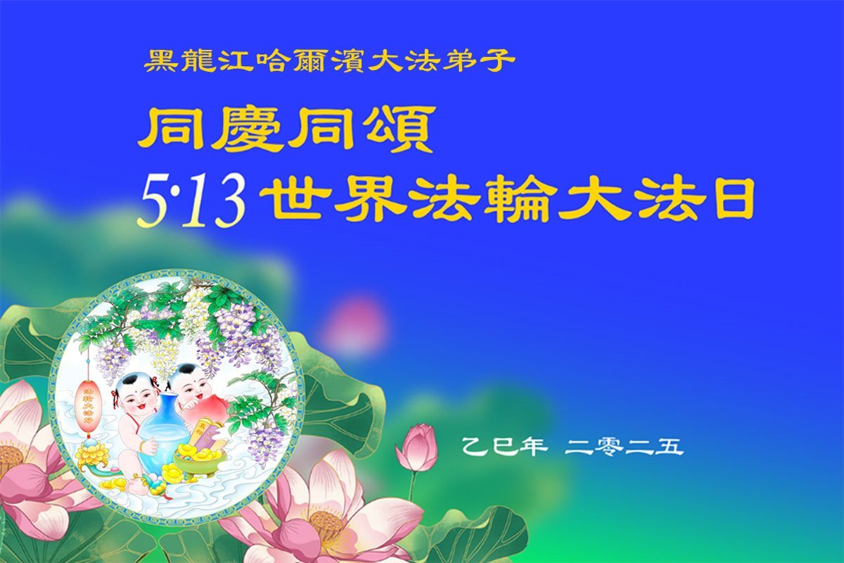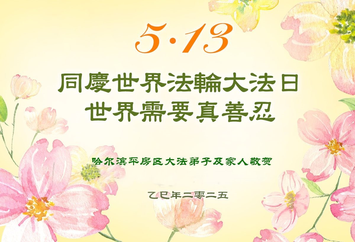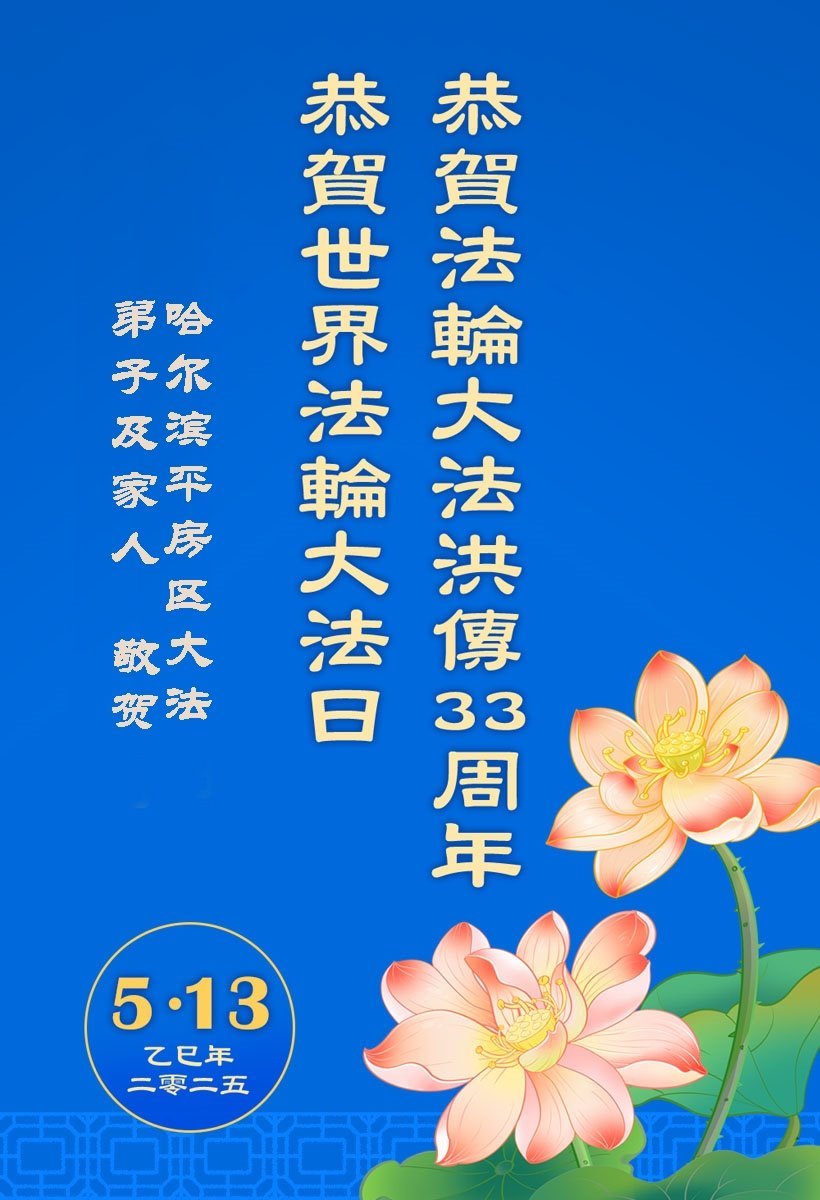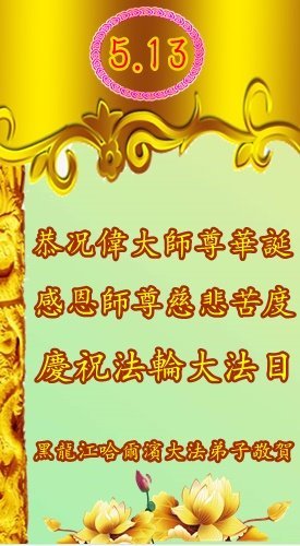 普天同庆法轮大法洪传三十三周年和第二十六届世界法轮大法日! 黑龙江省哈尔滨市平房区大法弟子及家人恭祝师尊生日快乐!