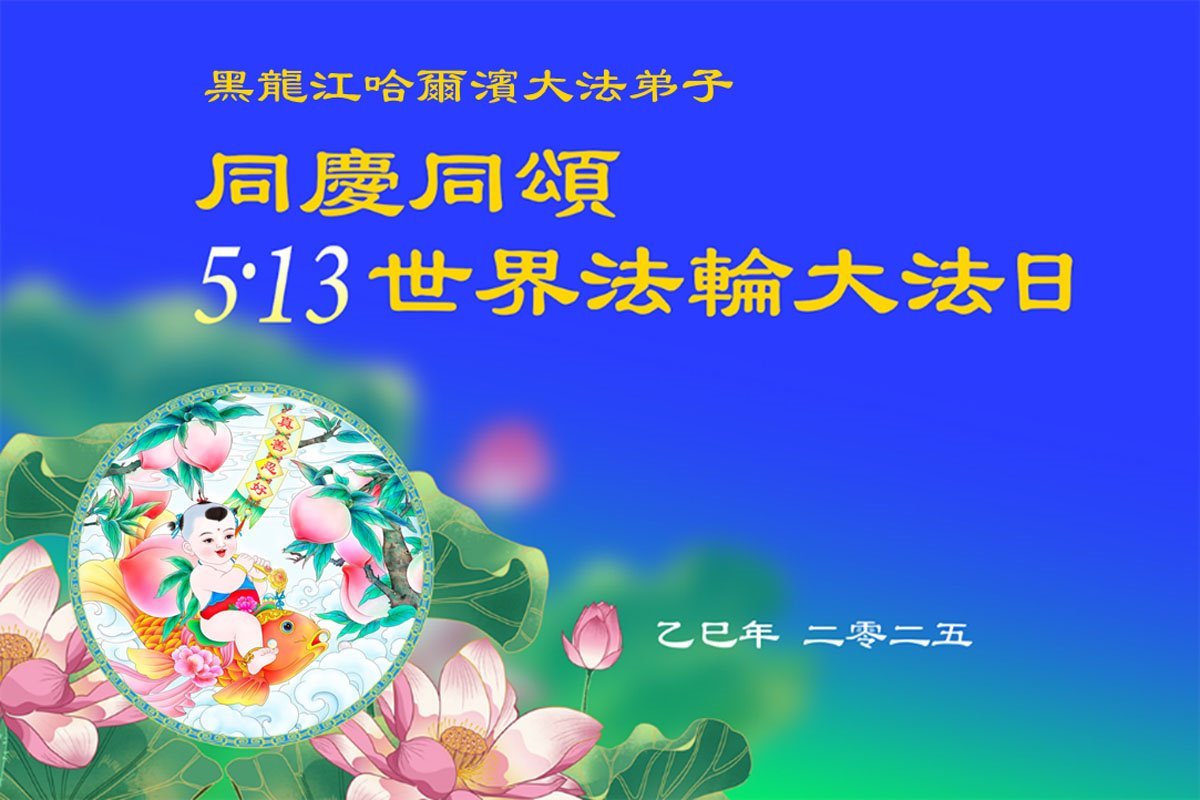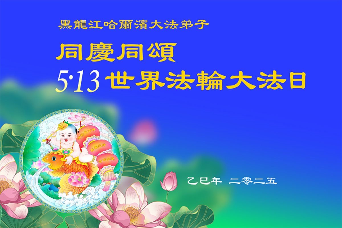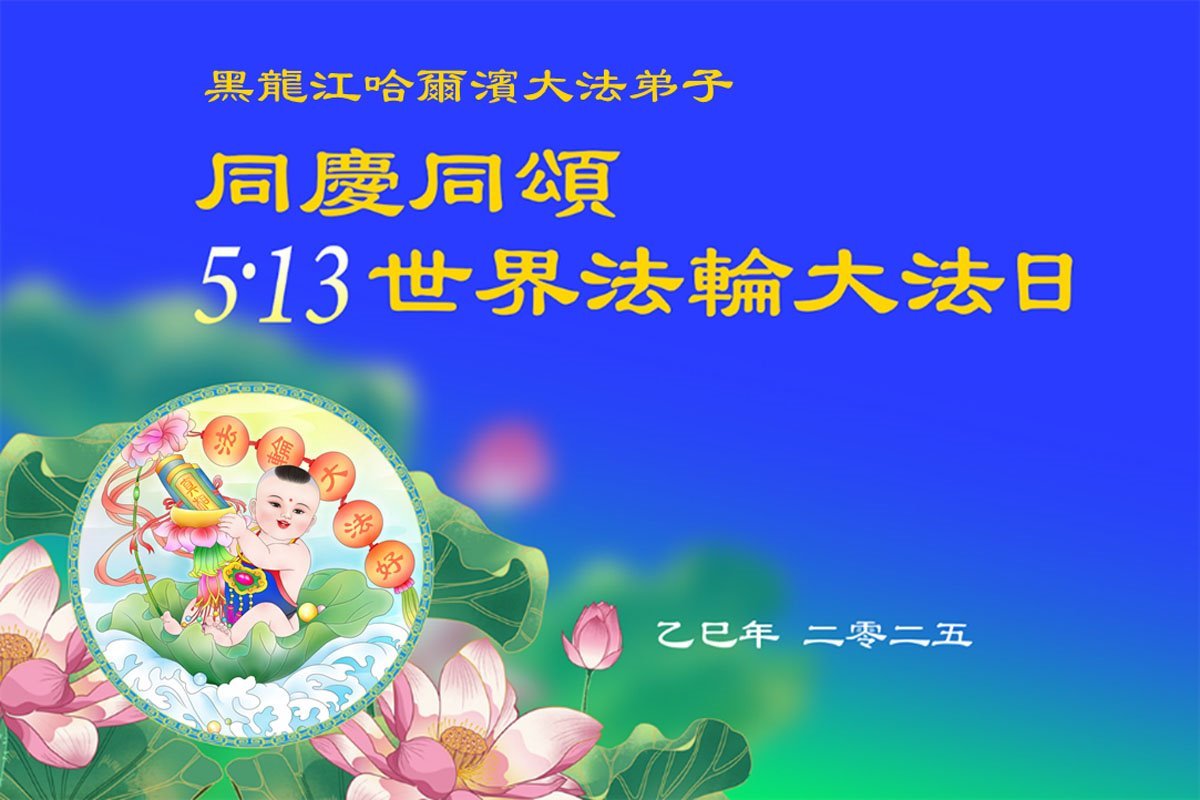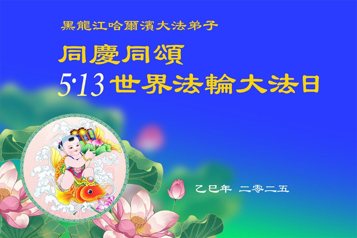 普天同庆法轮大法洪传三十三周年和第二十六届世界法轮大法日! 黑龙江省哈尔滨市平房区大法弟子及家人恭祝师尊生日快乐!