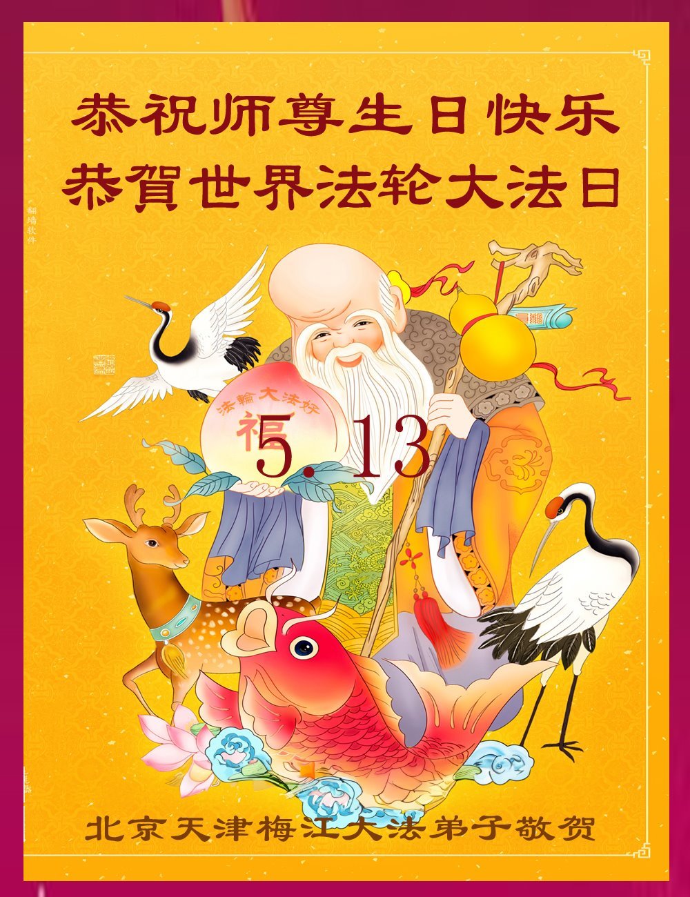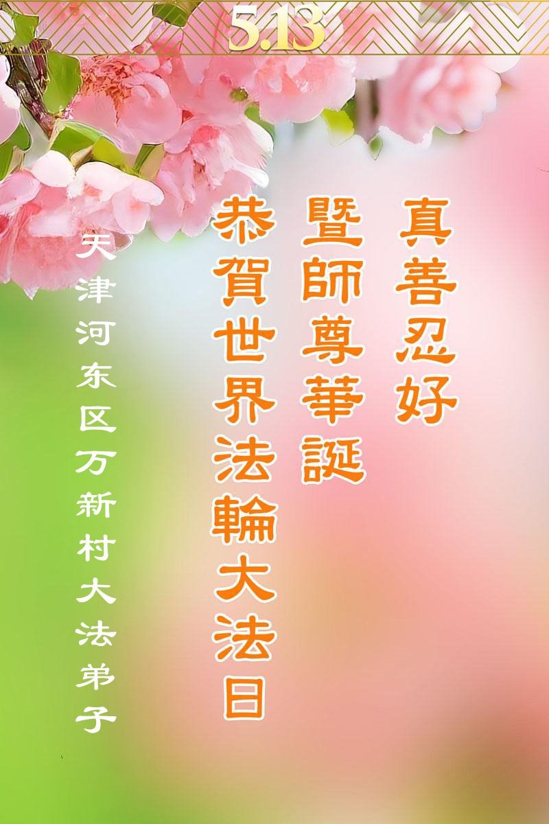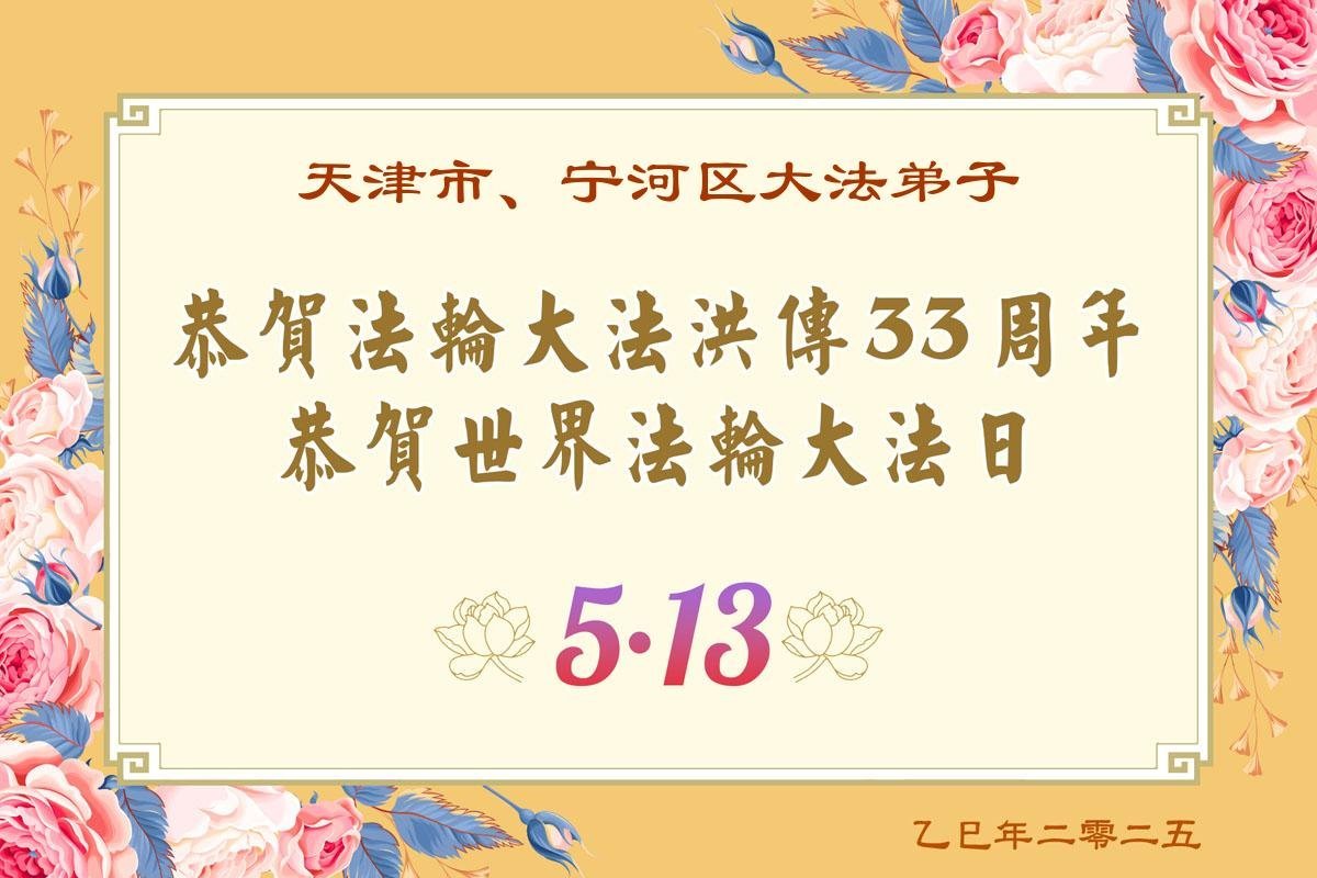【明慧网二零二五年五月十二日】 天津市大法弟子恭贺世界法轮大法日暨敬祝慈悲伟大的师尊生日快乐!