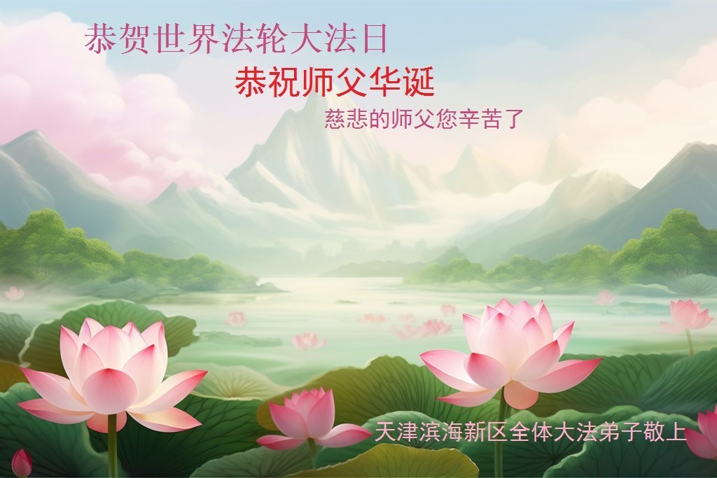 天津滨海新区大法弟子恭贺世界法轮大法日暨师尊生日快乐!