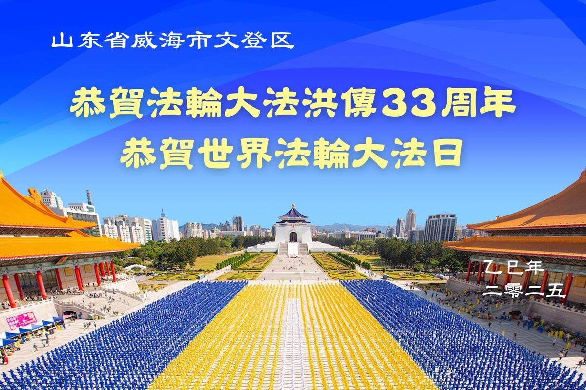 山东省威海市文登区一学法小组恭贺法轮大法洪传33周年!感谢师父救度洪恩!