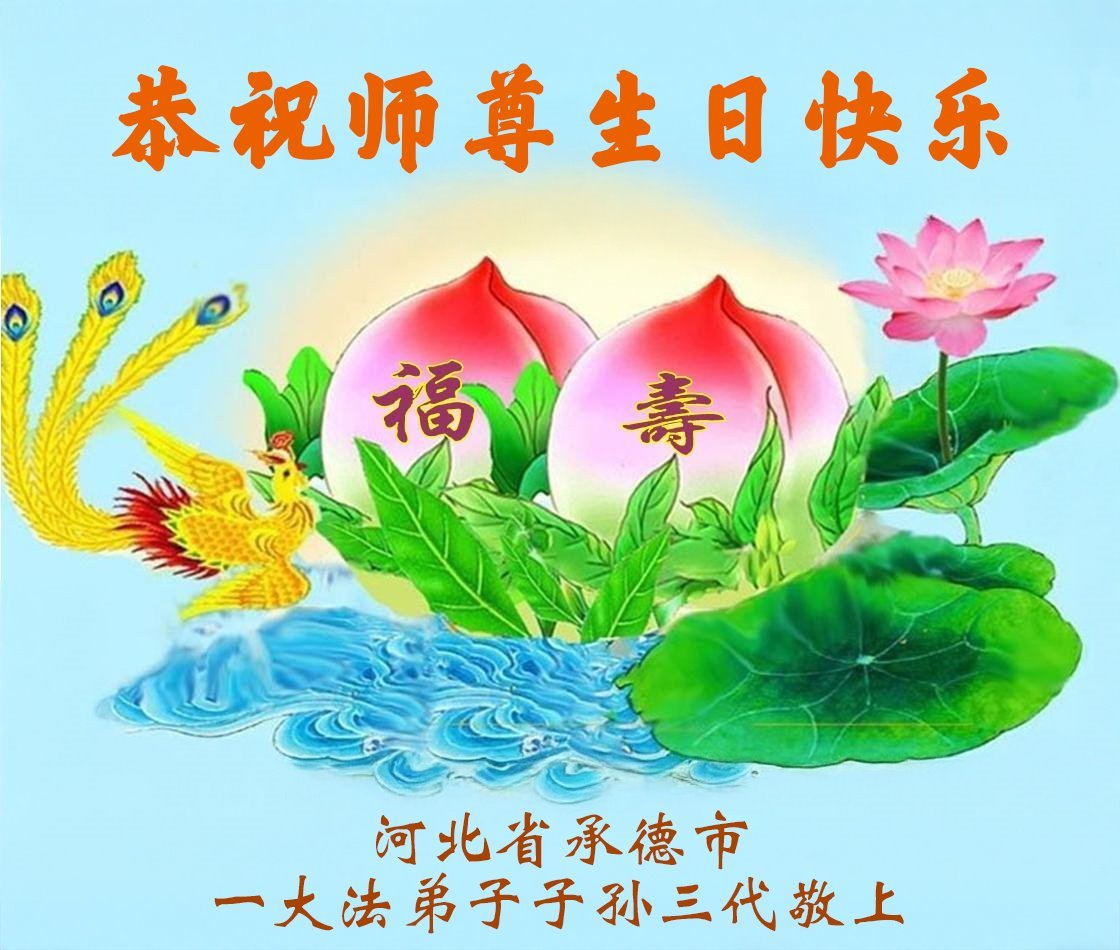 恭祝师尊生日快乐!恭贺世界法轮大法日! 河北省承德市大法弟子敬上 河北省沧州市泊头市大法弟子庆贺世界法轮大法日!恭祝慈悲伟大的师父生日快乐!