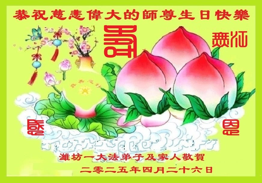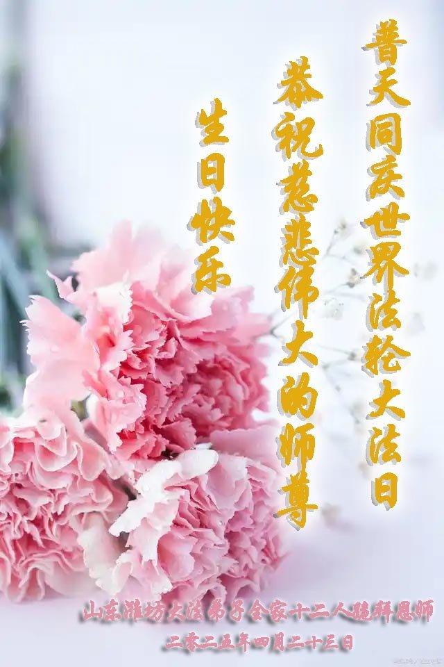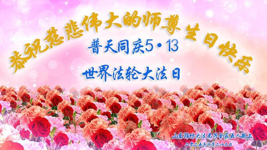 【明慧网二零二五年五月十二日】 山东潍坊大法弟子全家五人恭祝慈悲伟大的师尊生日快乐!普天同庆世界法轮大法日!