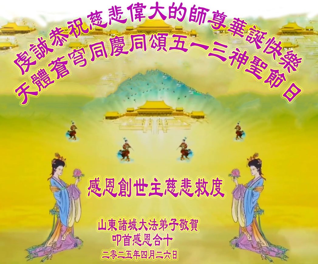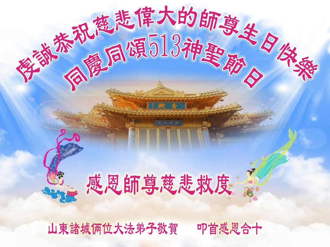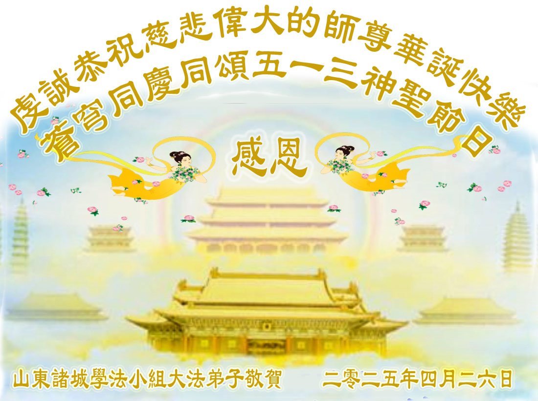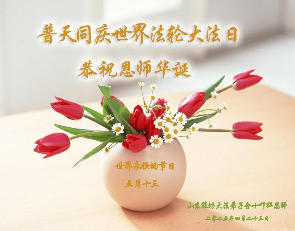山东潍坊大法弟子恭祝恩师华诞!普天同庆世界法轮大法日!