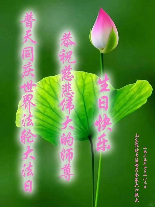 山东省潍坊市诸城市大法弟子恭贺法轮大法日!恭祝师父生日快乐!