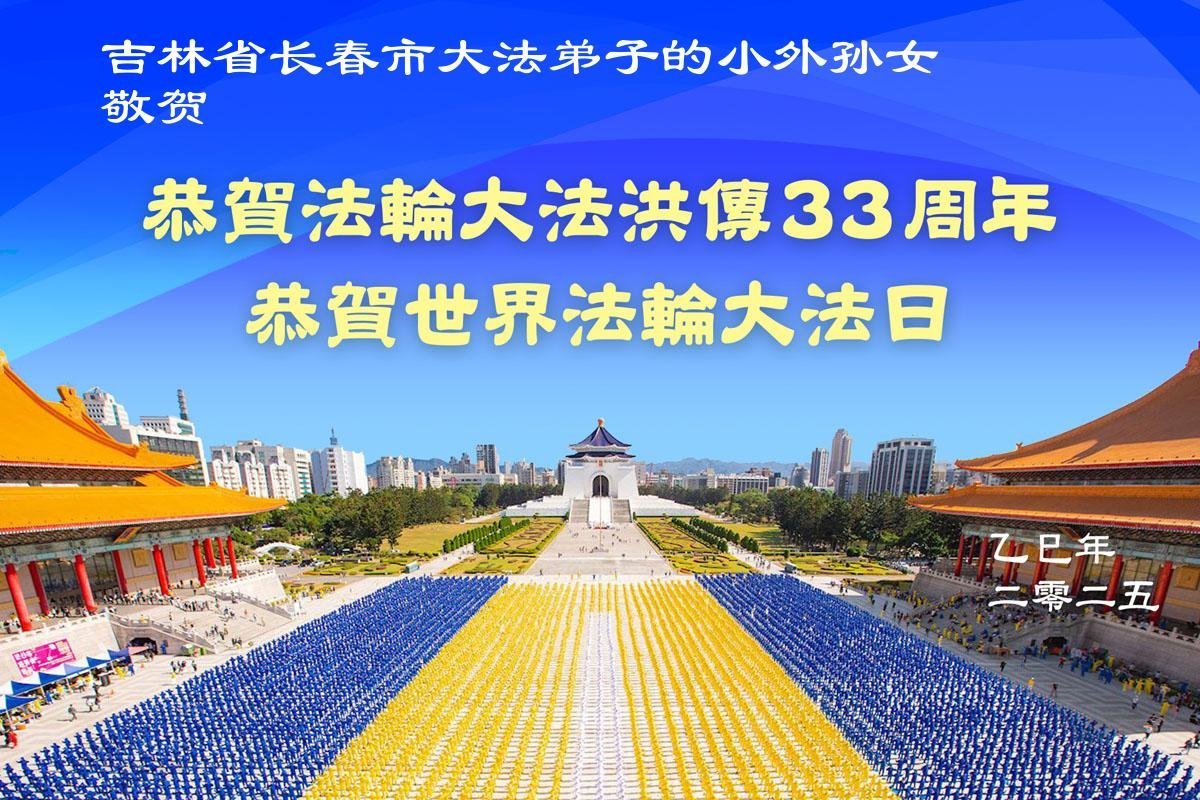 吉林省长春一大法弟子恭贺大法洪传三十三周年!