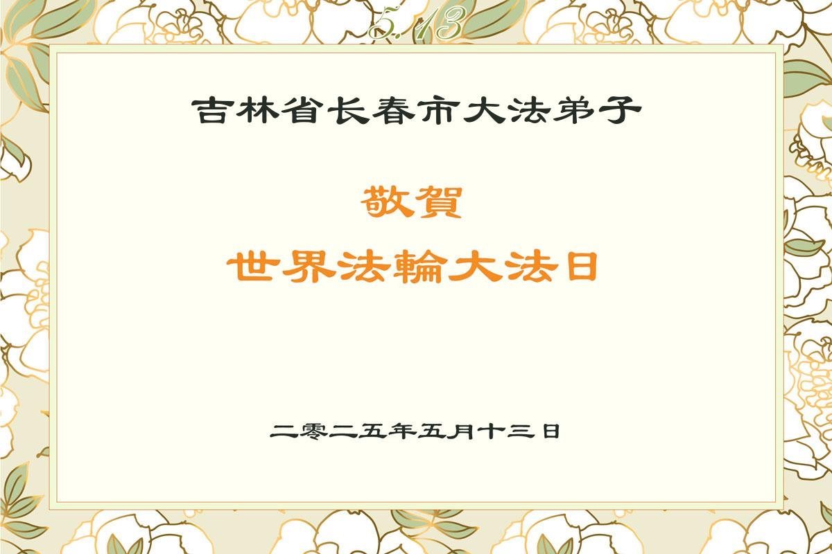 【明慧网二零二五年五月十二日】 吉林省长春市德惠三人学法小组大法弟子恭贺世界法轮大法日!