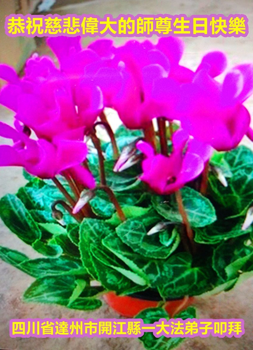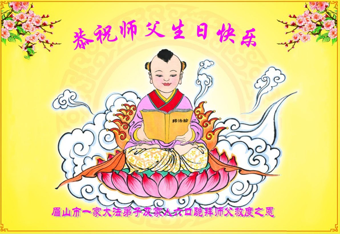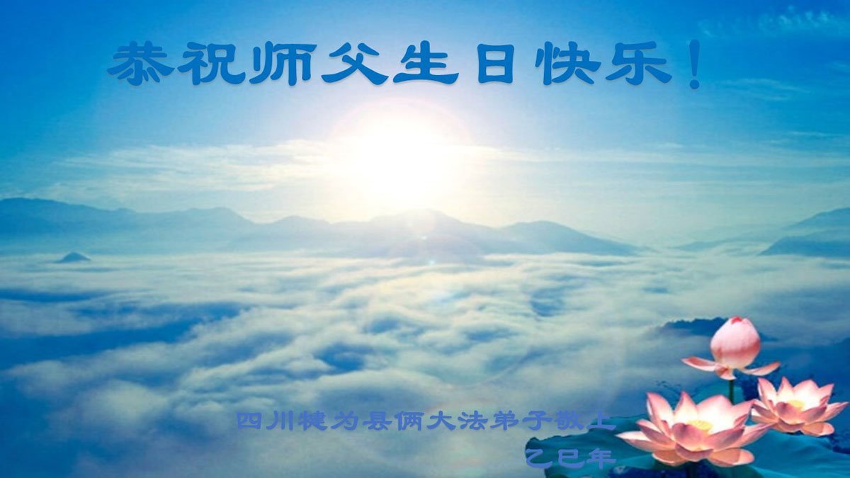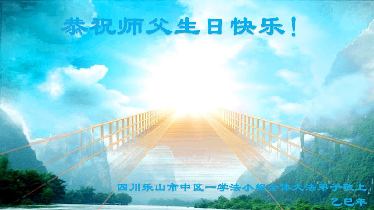 【明慧网二零二五年五月十二日】 四川乐山市中区一学法小组全体大法弟子恭祝师父生日快乐!