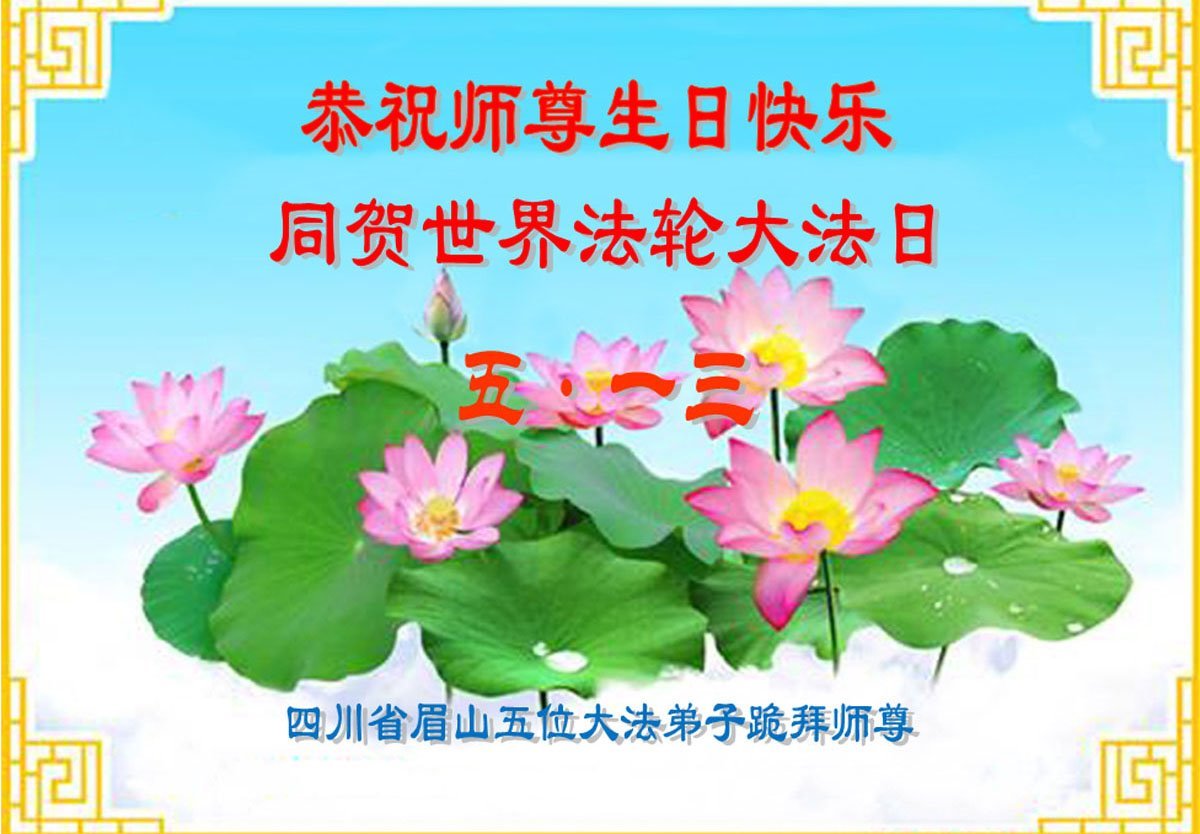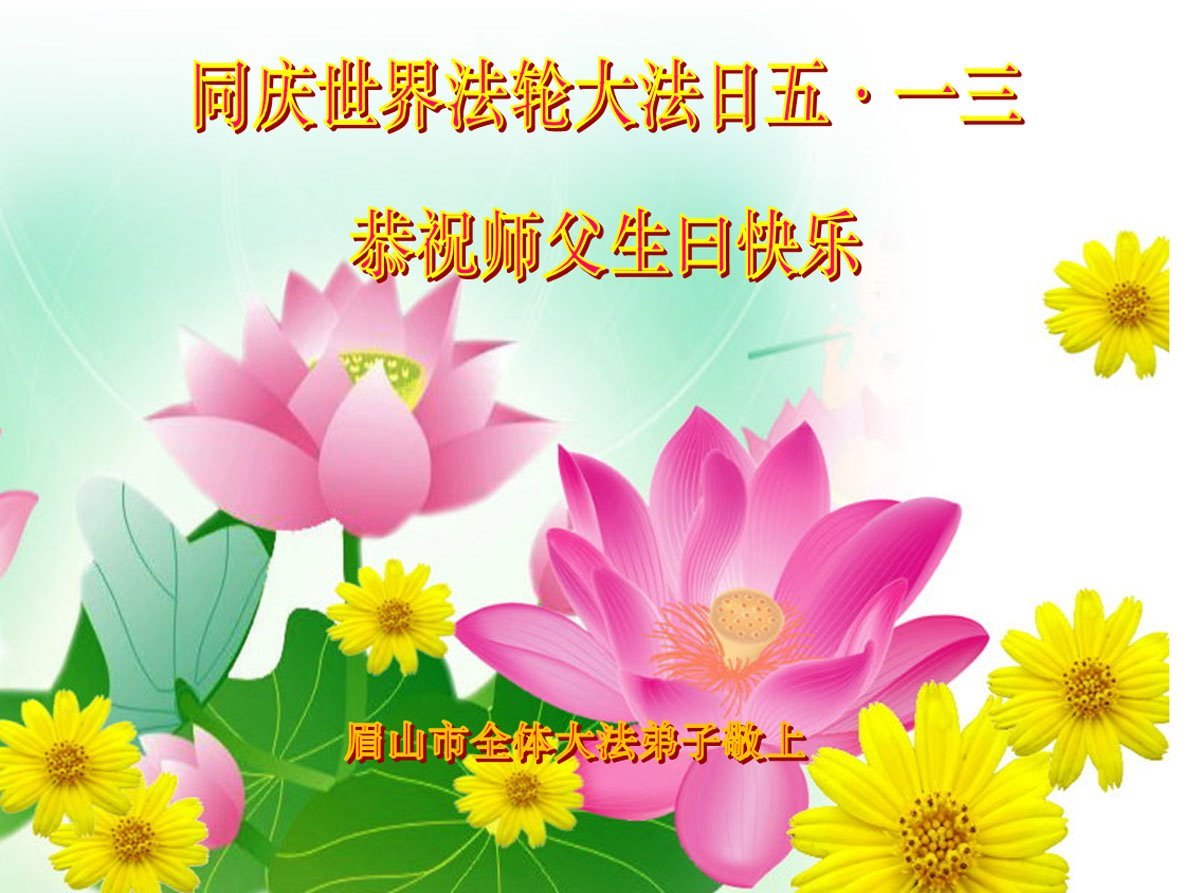四川省眉山市大法弟子恭贺世界法轮大法日!恭祝师尊生日快乐!