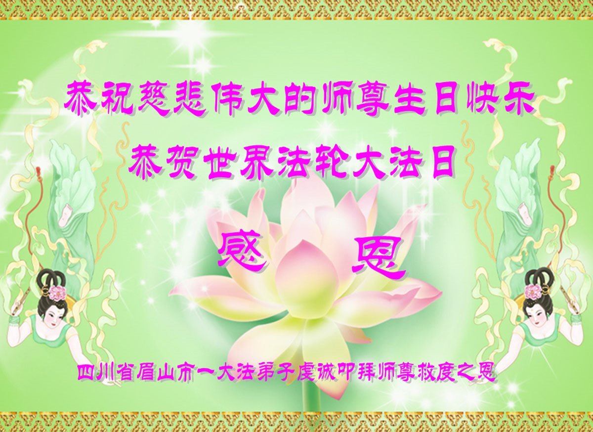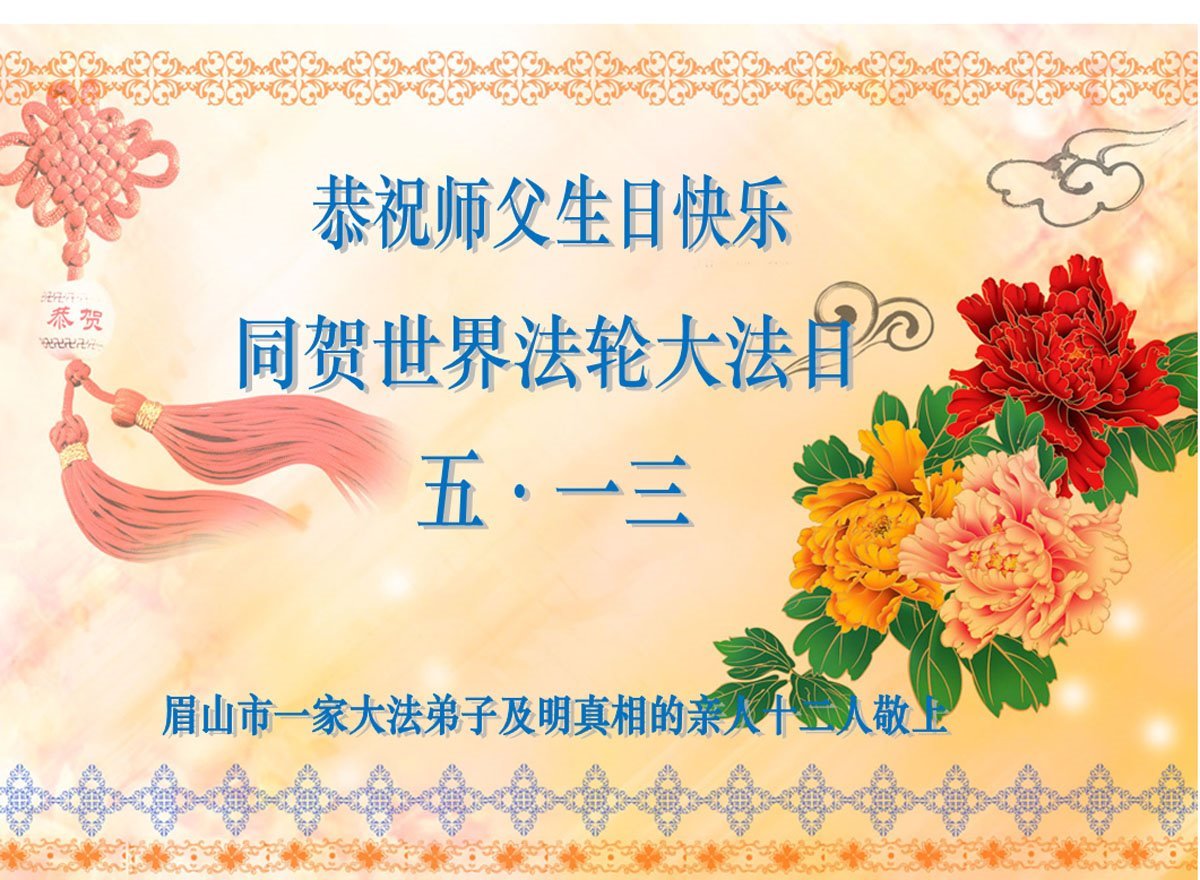 四川省眉山一大法弟子恭贺世界法轮大法日!恭祝师尊生日快乐!