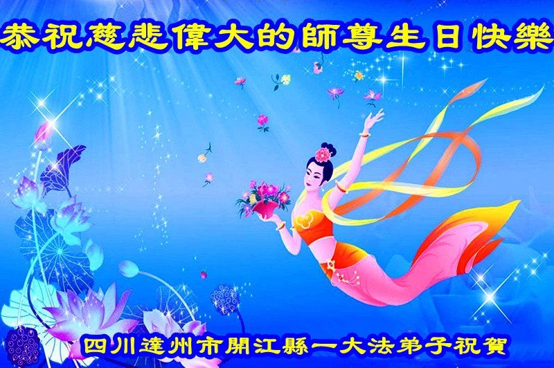 四川达州市开江县一大法弟子恭祝慈悲伟大的师尊生日快乐!