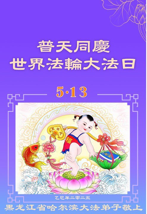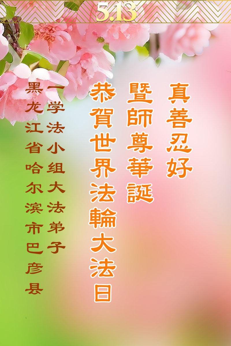 恭贺世界法轮大法日暨师尊生日快乐! 黑龙江省哈尔滨市周边大法弟子全家敬上 黑龙江省哈尔滨市一学法小组大法弟子恭贺世界法轮大法日暨师尊生日快乐!