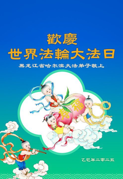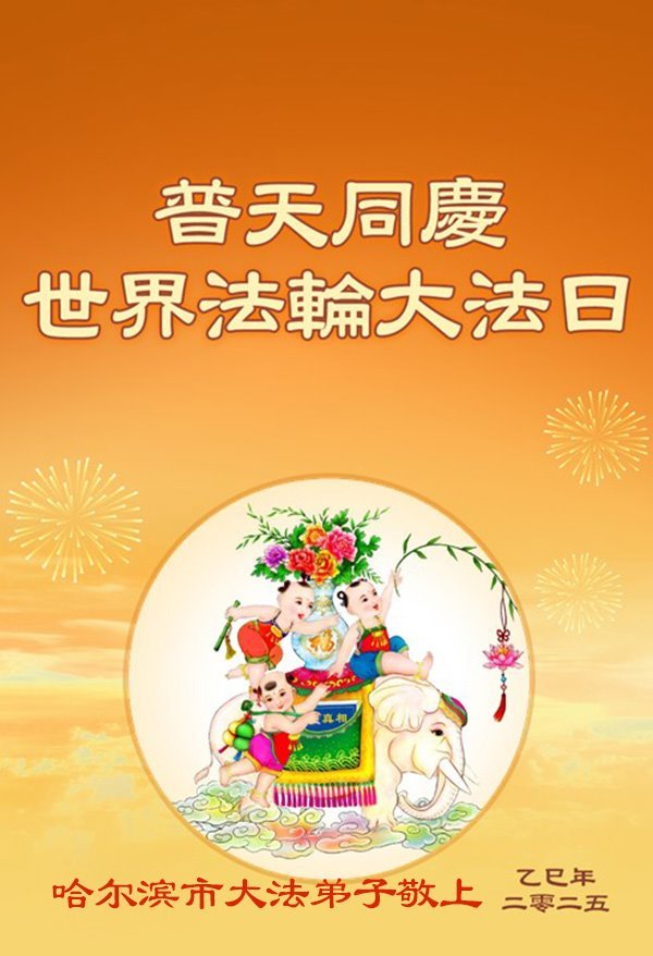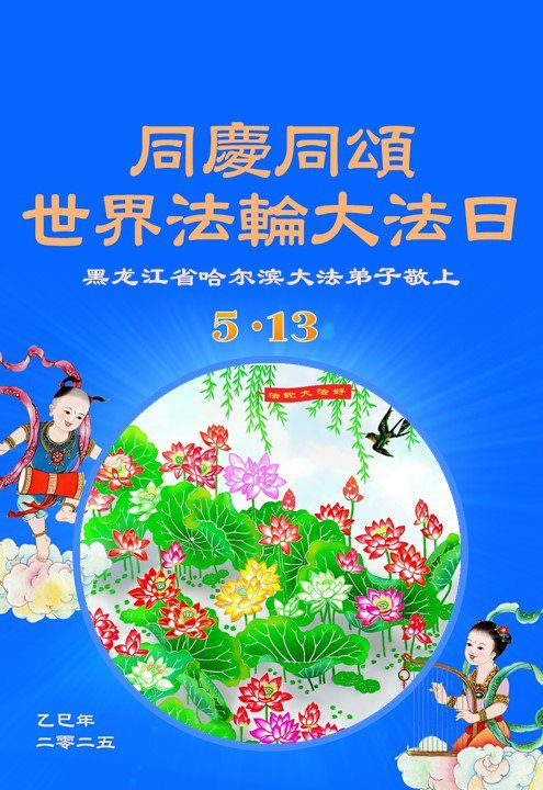 感恩师父恩赐给弟子们美好的未来和荣耀!法轮功已洪传全球100多个国家和地区,广受欢迎,褒奖和赞赏,全世界飘扬着中英文“法轮大法好”的横幅。在正法的最后时刻,弟子一定要努力,学好法,精進真修实修,兑现自己神圣的誓约,跟师父回家。 黑龙江省哈尔滨市大法弟子恭贺世界法轮大法日暨师尊生日快乐!