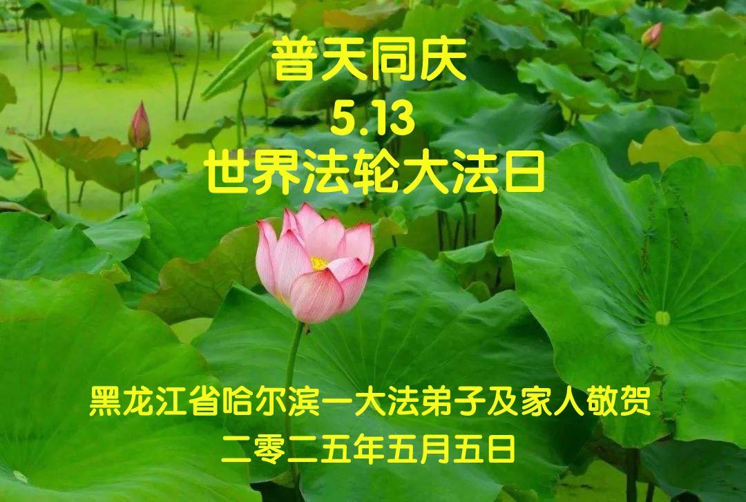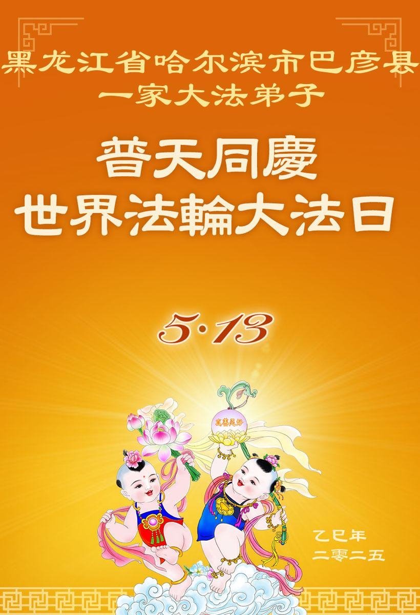 庆祝世界法轮大法日! 黑龙江省哈尔滨市巴彦县大法弟子一家人敬上 二零二五年五月五日 黑龙江省哈尔滨市巴彦县一学法小组大法弟子恭贺世界法轮大法日!
