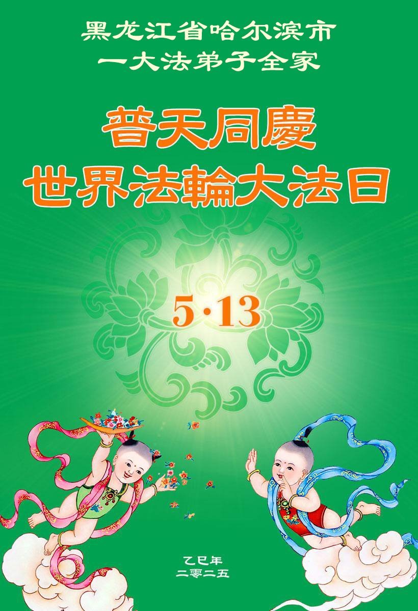 普天同庆5.13世界法轮大法日! 黑龙江省哈尔滨市一大法弟子及家人敬上 黑龙江省哈尔滨市双城区一大法弟子恭贺世界法轮大法日!恭祝师尊生日快乐!