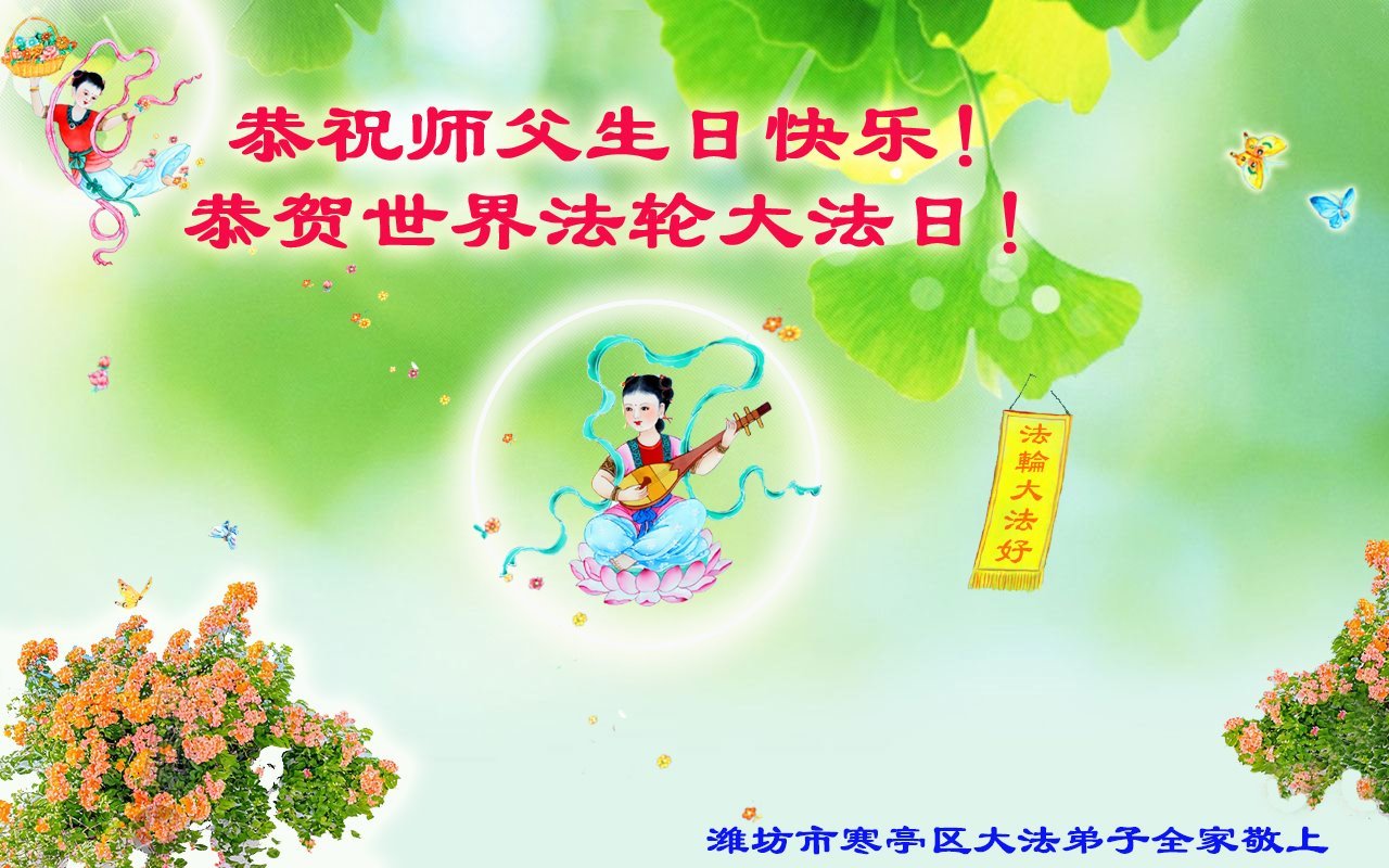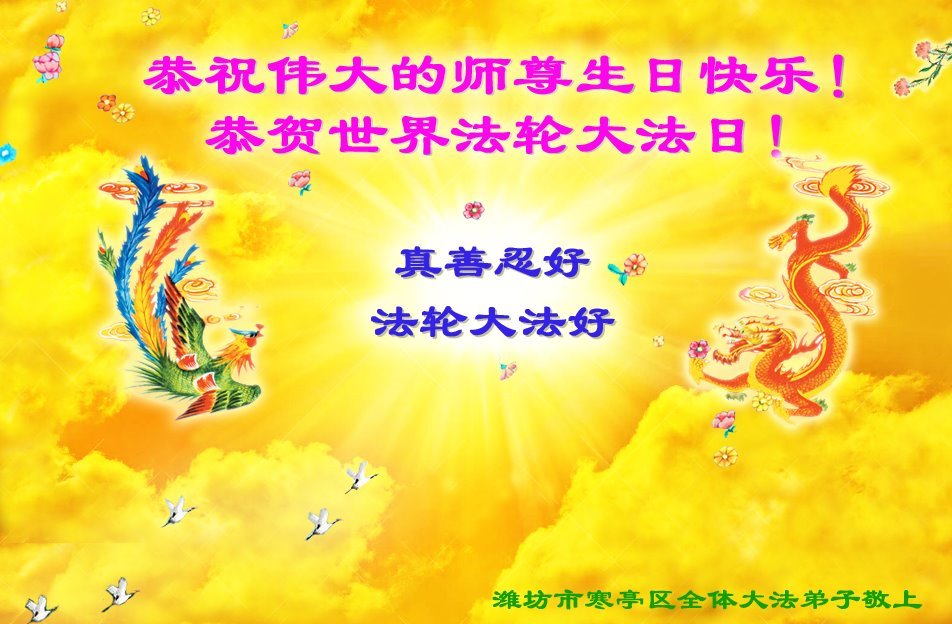 山东省潍坊市寒亭区大法弟子恭贺世界法轮大法日暨师尊生日快乐!