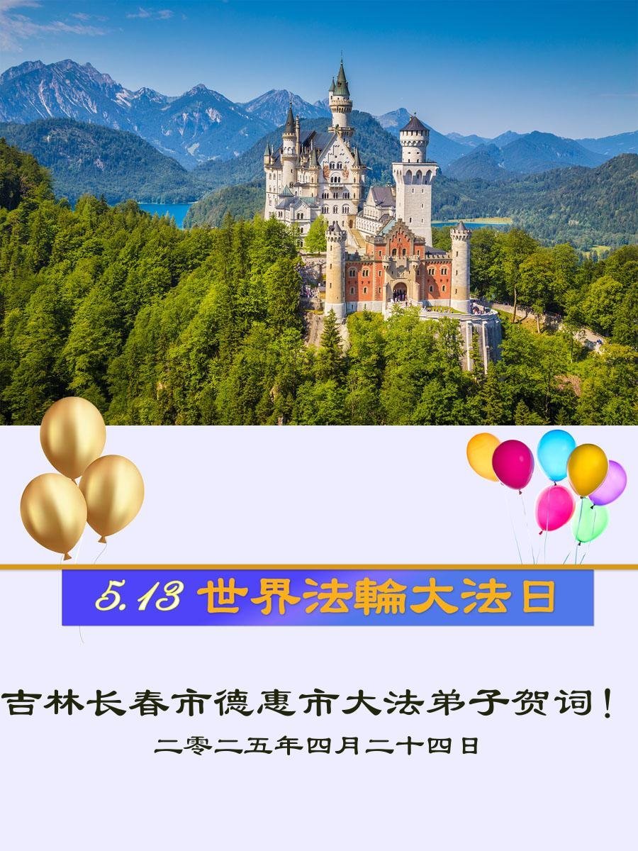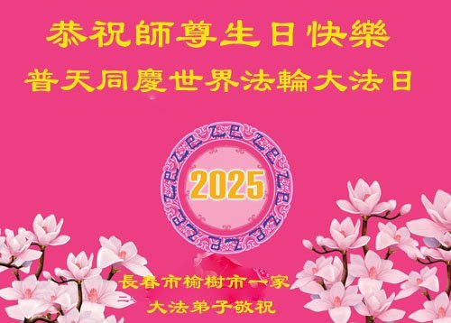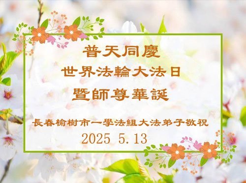 【明慧网二零二五年五月十二日】 吉林省长春市榆树市一学法组大法弟子恭贺世界法轮大法日暨师尊华诞!