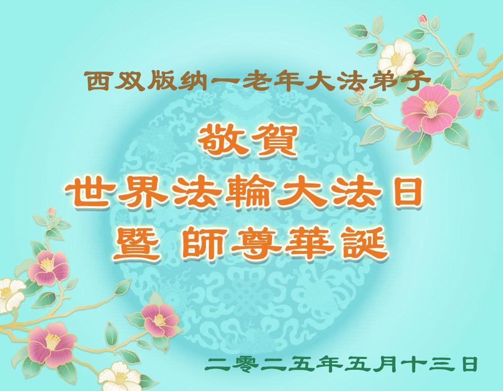 云南省西双版纳一老年大法弟子恭贺世界法轮大法日暨敬祝师尊华诞!