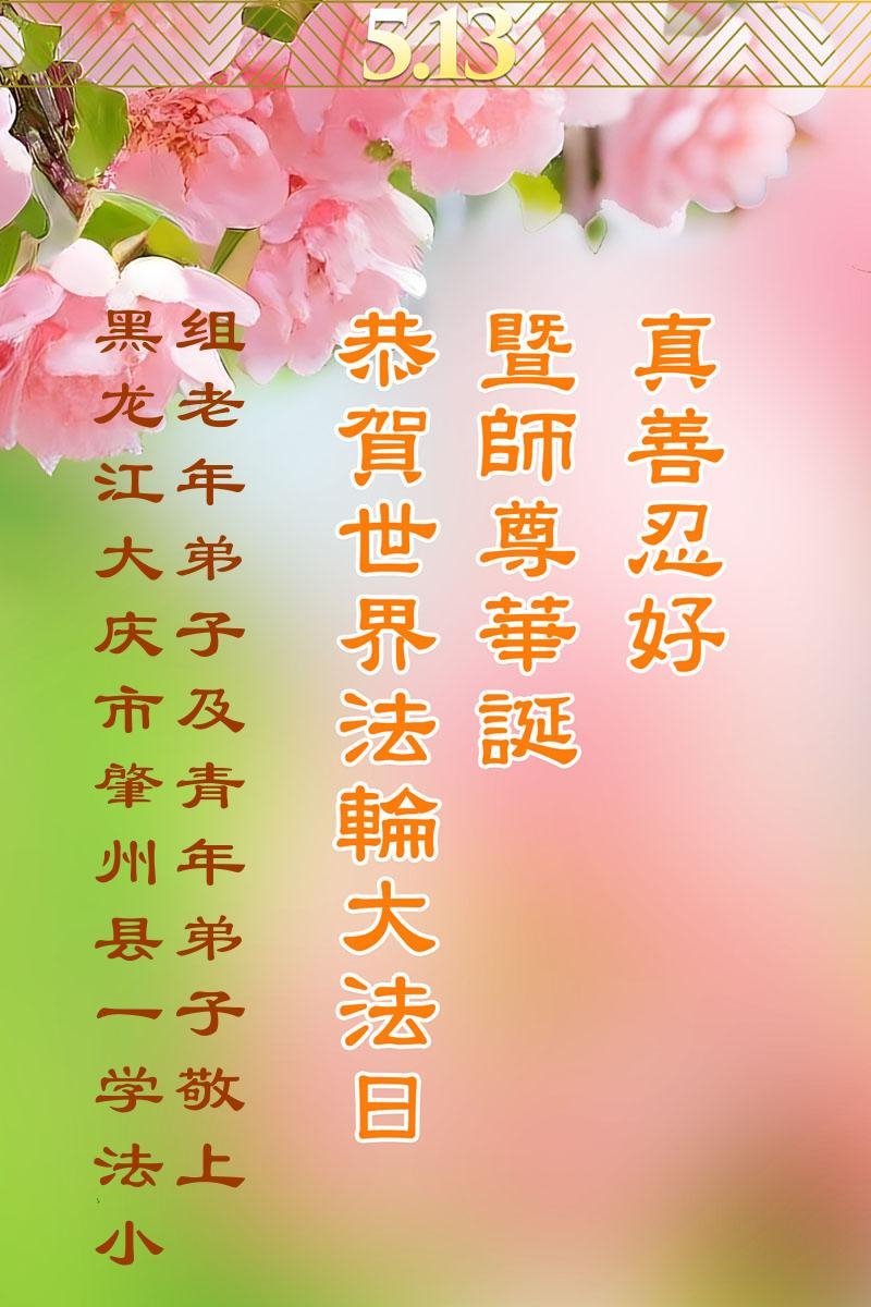 恭贺世界法轮大法日! 同庆五·一三 师尊生日五·一三 宇宙上下同庆典 得法圣徒再精進 救度众生不等闲 齐发正念扫阴霾 铲除邪恶兑誓言 众生得救无言表 同庆同祝五·一三 黑龙江省大庆市肇州县一学法小组大法弟子敬上 二零二五年五月五日 黑龙江大庆市肇州县一学法小组老年及青年大法弟子恭贺师尊华诞!