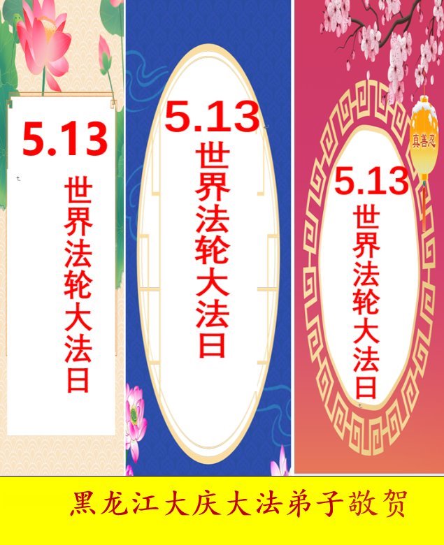 庆祝五一三 五一三日这一天,圣王降临人世间。为救众生传天法,甘露撒遍宇宙间。 亿万圣徒结法缘,得法精進读金篇。东西南北撒真相,不畏严寒不怕险。 众生得救谢师恩,法徒感恩无尽言。三件事上再精進,师徒同庆五一三。 黑龙江省大庆市肇州县大法弟子敬上 二零二五年五月四日 黑龙江省大庆市红岗区大法弟子恭贺世界法轮大法日暨师尊生日快乐!
