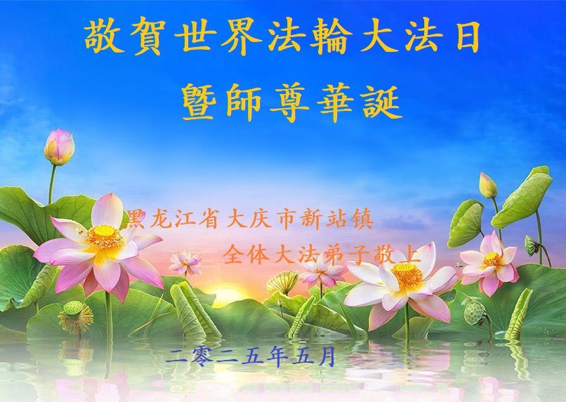 恭贺世界法轮大法日! 黑龙江省大庆大法弟子敬上 黑龙江省大庆市新站镇大法弟子敬贺世界法轮大法日暨师尊华诞!