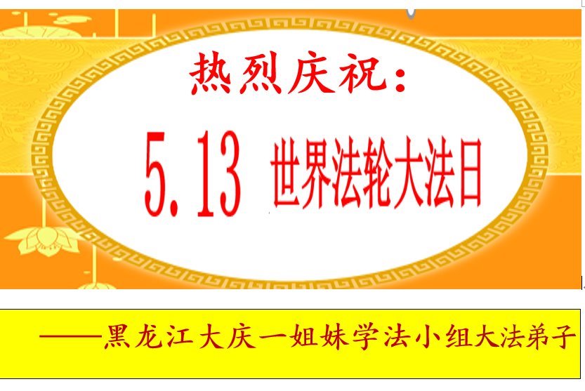 【明慧网二零二五年五月十二日】 黑龙江省大庆肇州县大法弟子恭贺世界法轮大法日!