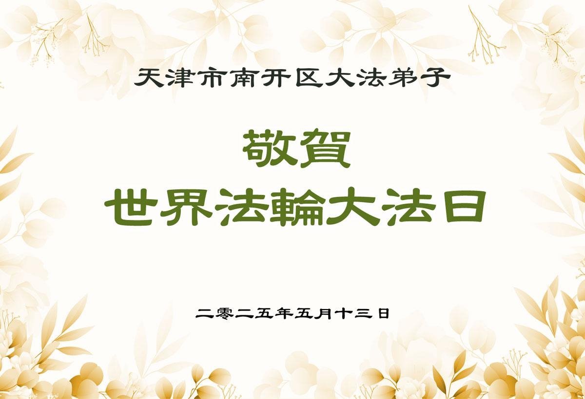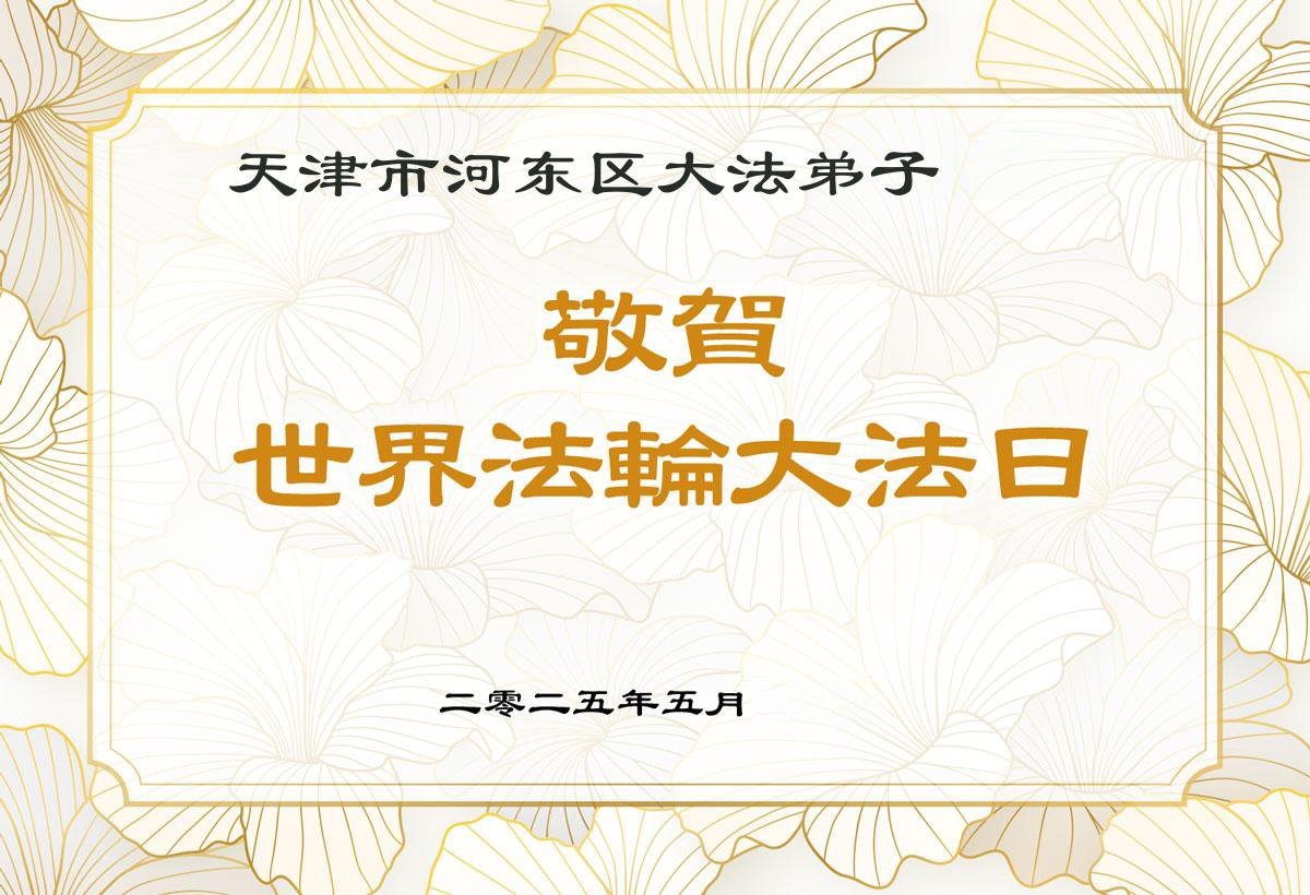 【明慧网二零二五年五月十二日】 天津红桥区丁字沽大法弟子恭贺世界法轮大法日!恭祝恩师生日快乐!