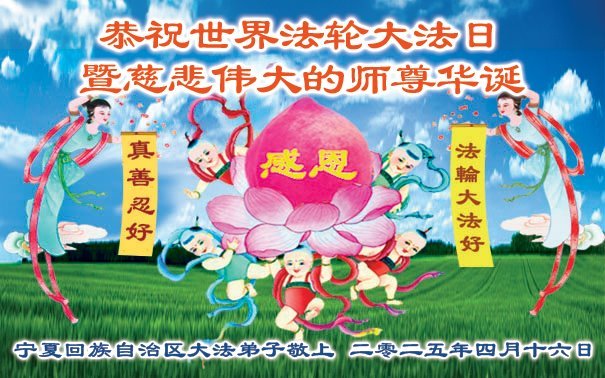 宁夏银川市大法弟子敬上 宁夏银川市大法弟子恭贺世界法轮大法日暨师父华诞!